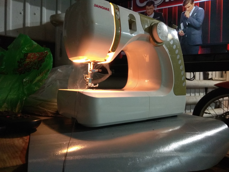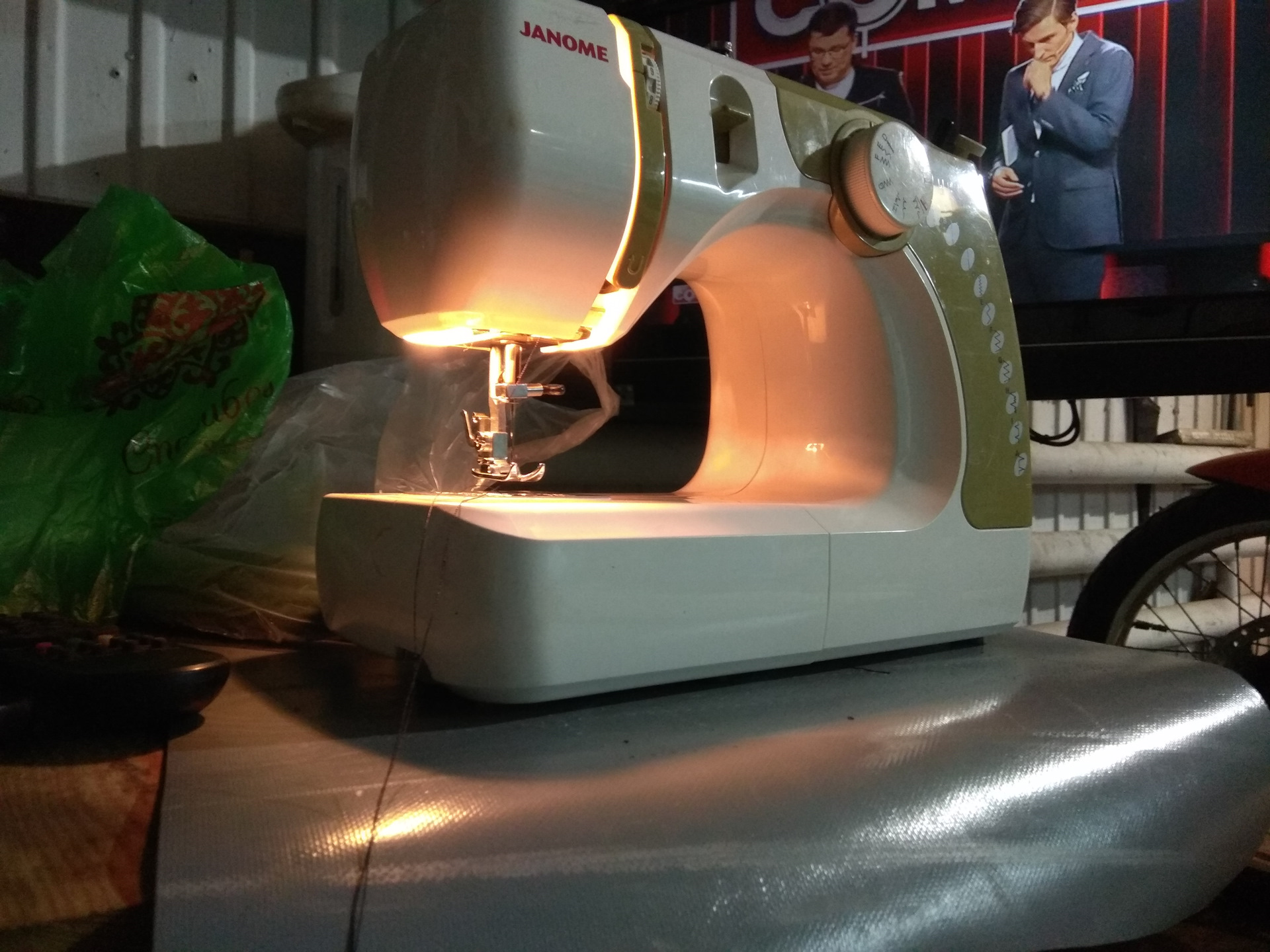 Во внутрь на заднюю стенку вырезал фанеру для жёсткости и прикрутил болтами к рамке. Колхоз, но держится надёжно. Размер 45*55*20. Пока сшил только левую . Завтра буду шить правую.Влезло палатка, спальник, моя любимая подушка, тапки, короче все для поспать (кроме коврика пенки).