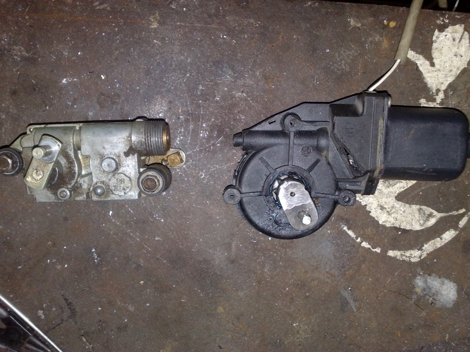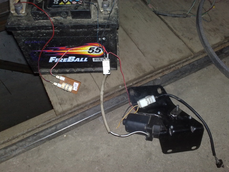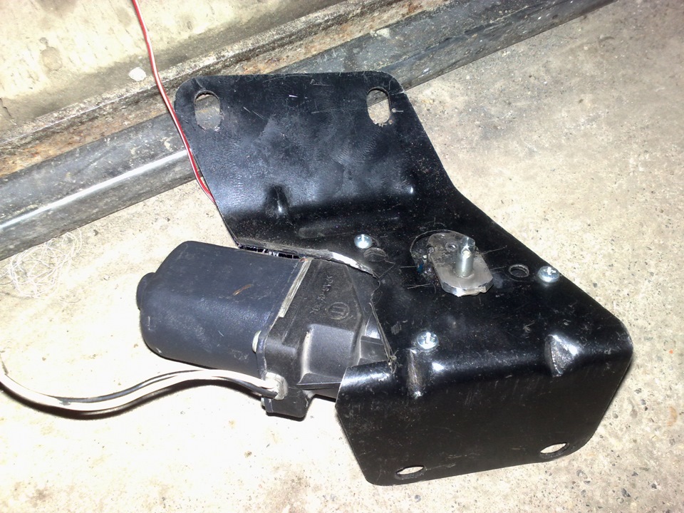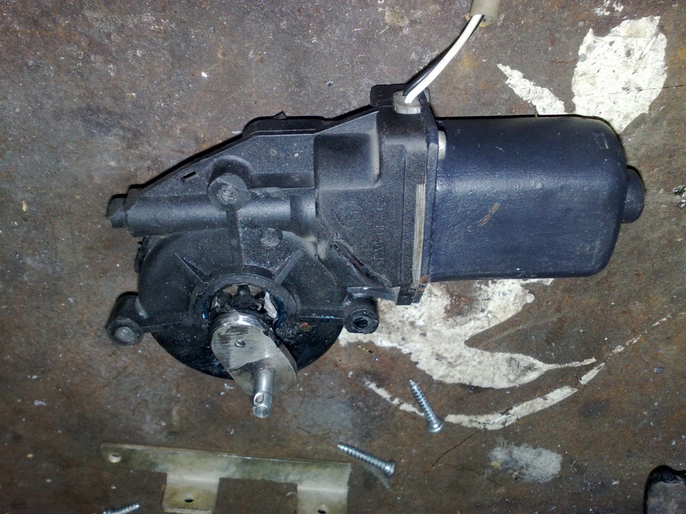 Решил попробовать установить готовый электромотор стеклоочистителя, после небольшой подгонки крепления все встало на "свои места".