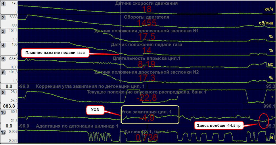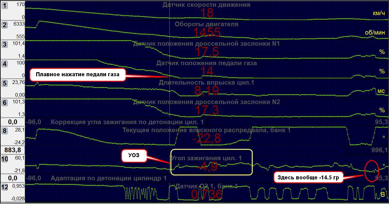 минусовые значения? В показанном ниже примере нет резкого изменения нагрузки и оборотов,