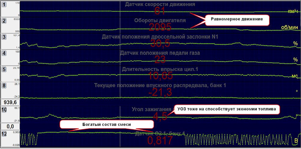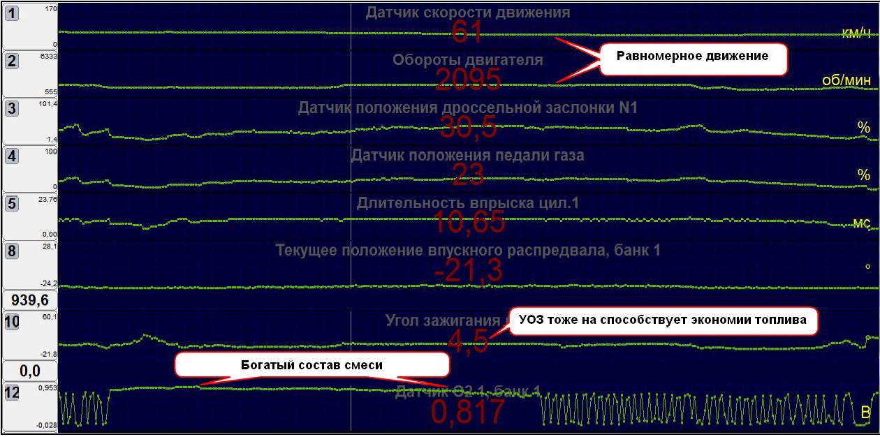 корректность калибровки системы впрыска. Расход топлива и динамика автомобиля приносятся