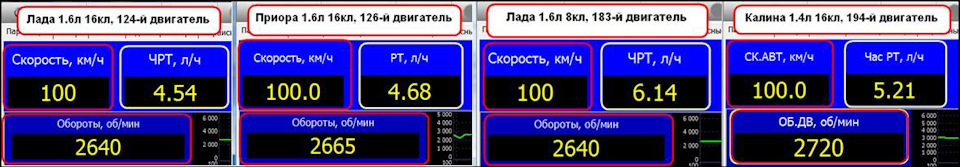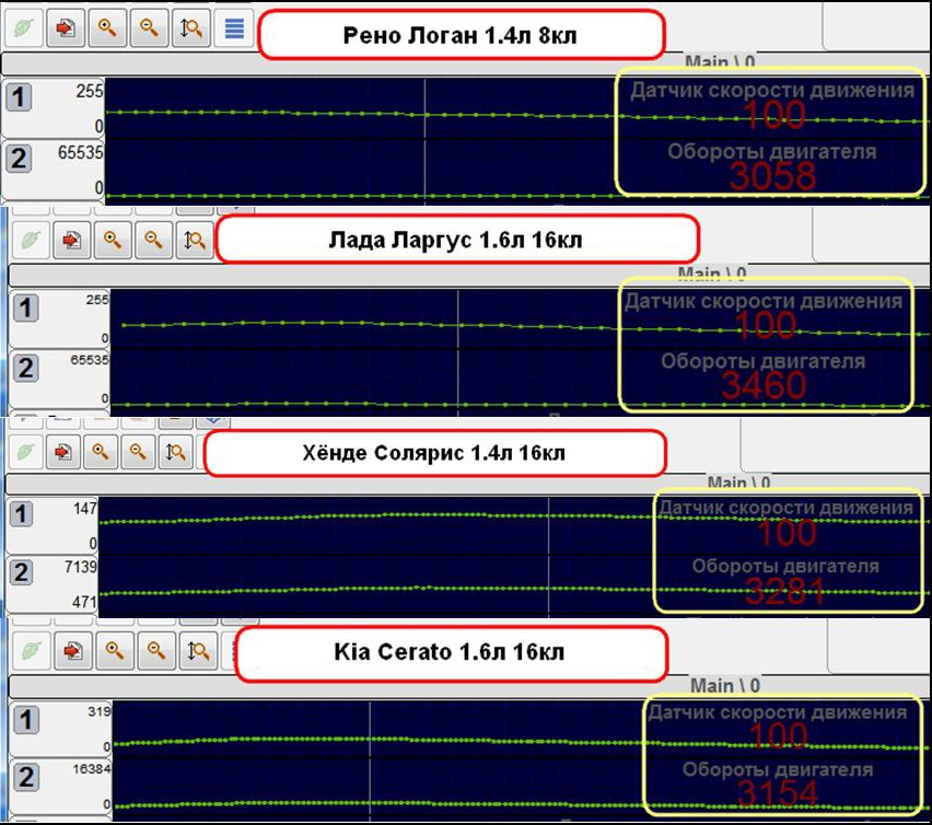 На картинке показаны обороты двигателей вазовских автомобилей при скорости движения –