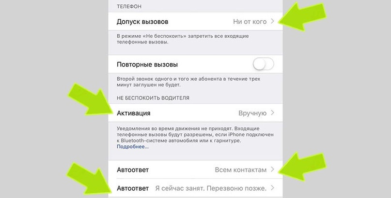 В качестве автоответчика мы будем использовать фишку «Не беспокоить водителя». Это одна из настроек режима Не беспокоить.