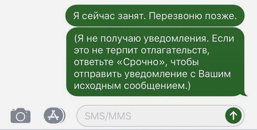 Теперь при поступлении входящего сообщения адресат получит такой ответ: