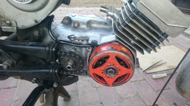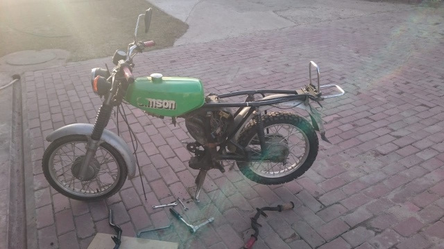 Теперь настала очередь экипажной части. уже демонтированы подножки водителяИм уже плохо и давноКак шутит мастер, как их в бараний рог согнула жизнь.Новые установлены.Ключ оригинальный старого образца на месте в режиме запуск.Двигатель красавец на месте, просто загляденье.Подключен генератор, начинается поиск искры.Снят бензобак и полный доступ к катушке зажигания.На фото видно установлен новый карбюратор и переломившийся защитный колпачок провода.Заглянул туда мастер не просто так. Оказалось что перепутаны провода и уже меняли клемму. Поэтому могли бытть перебои в зажигании.Новый колпачок уже на готове.Ванну в бензине принимает воздушный фильтр, отмокаетС фильтра уже капает отмокшее веретенное масло. После этого фильтр ставиться на мопед. Он уже пропитан маслом, а излишки стекают.Залил оригинальное масло. Минеральное масло.Установлен новый трос сцепления, мой начал рваться.Установлена новая резинка на кик стартер оригинальная.Процесс подготовки к установке новых не оргинальных резинок от Simson S53, но об этом знаю только я и Вы. Оригинальные плохого качества современное производство.Правая сторона готова и установлена новая лапка КПП с резинкойЛевая сторона готова.Отслужили своё…Разобран бензокран, фото эпично. Ржи много…Уплотнительная резинка, одервенела от времени и то что была сухой.Новая резина уже готова к установке