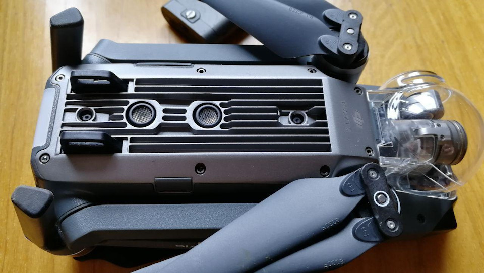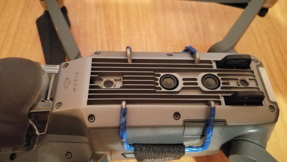 Ну, думаю, сейчас хоть изолентой примотаю и попробую. Не, не тут-то было — снизу у мавика два ультразвуковых датчика и две камеры для точной посадки. Перекрывать их, по понятным причинам, не хотелось.