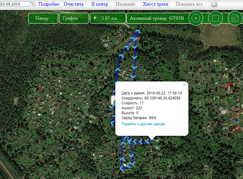 Вот трек с трекера GT03B на livegpstracks.com, полученный в режиме онлайн: