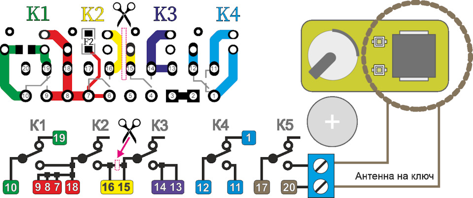К5 – обходчик иммобилайзера (имеет фичу в виде срабатывания 0,05с при подаче питания)