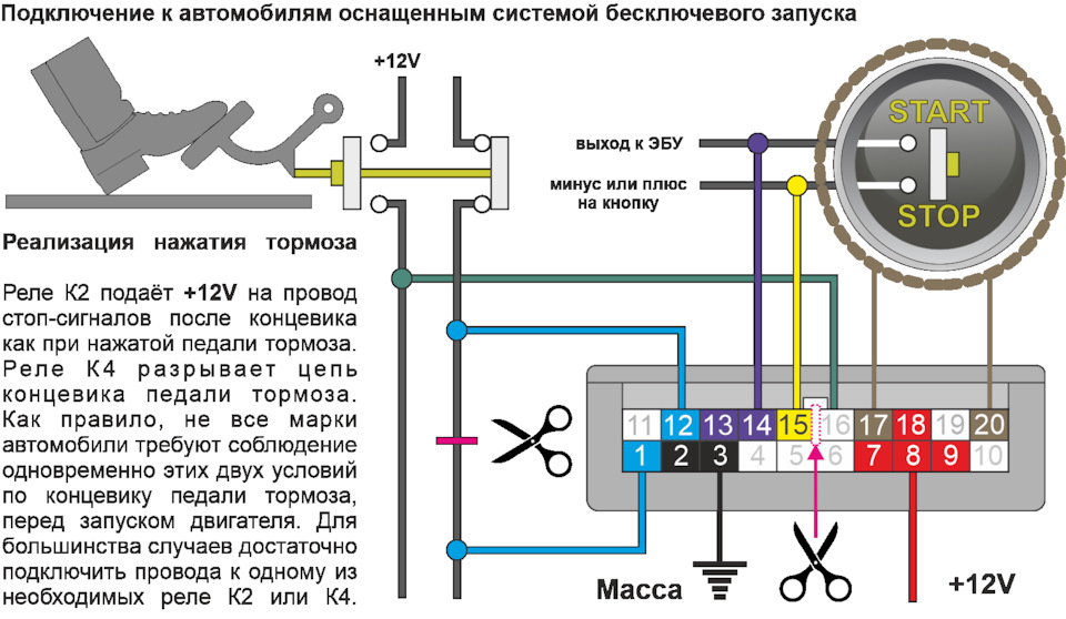 К4 – потребители, ACC, обманка педали тормоза, обманка сигнализации, Webasto, управление кнопкой ЦЗ (задается в прошивке)