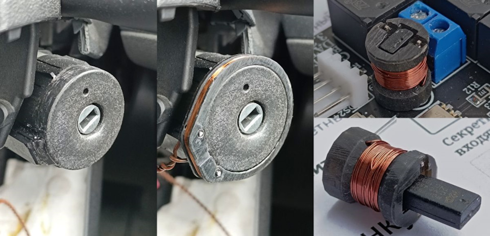 Обходчик иммобилайзера собирается на двух катушках, одна поверх чипа, вторая поверх штатной антенны на замке зажигания, контур замыкает реле К5.