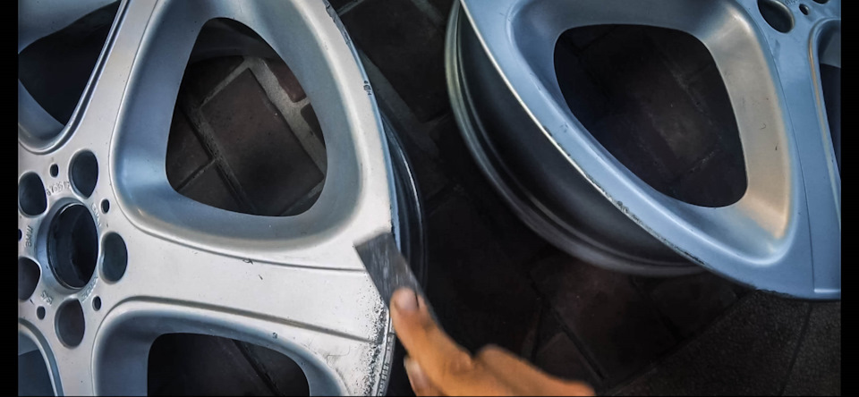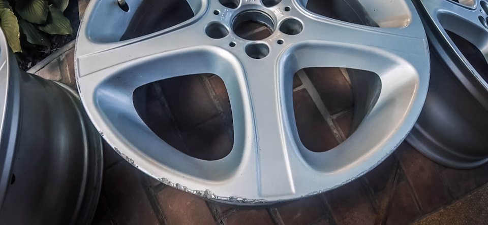 Продолжаю приводить в порядок комплект 20” дисков 87 стиля для X5. На дисках есть глубокая бордюрка, будем ее устранять, реставрировать и красить диски.