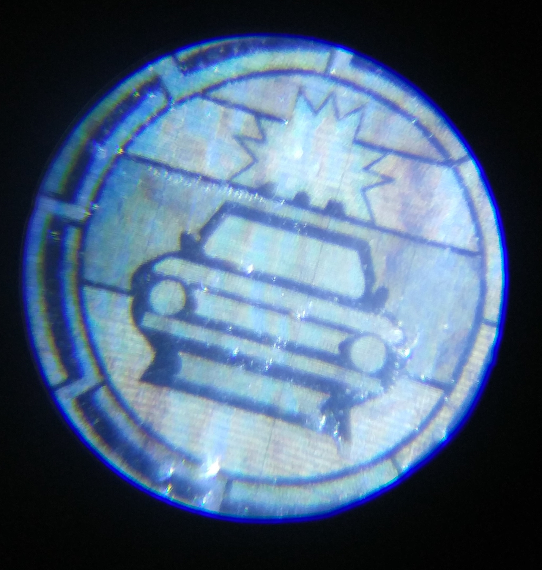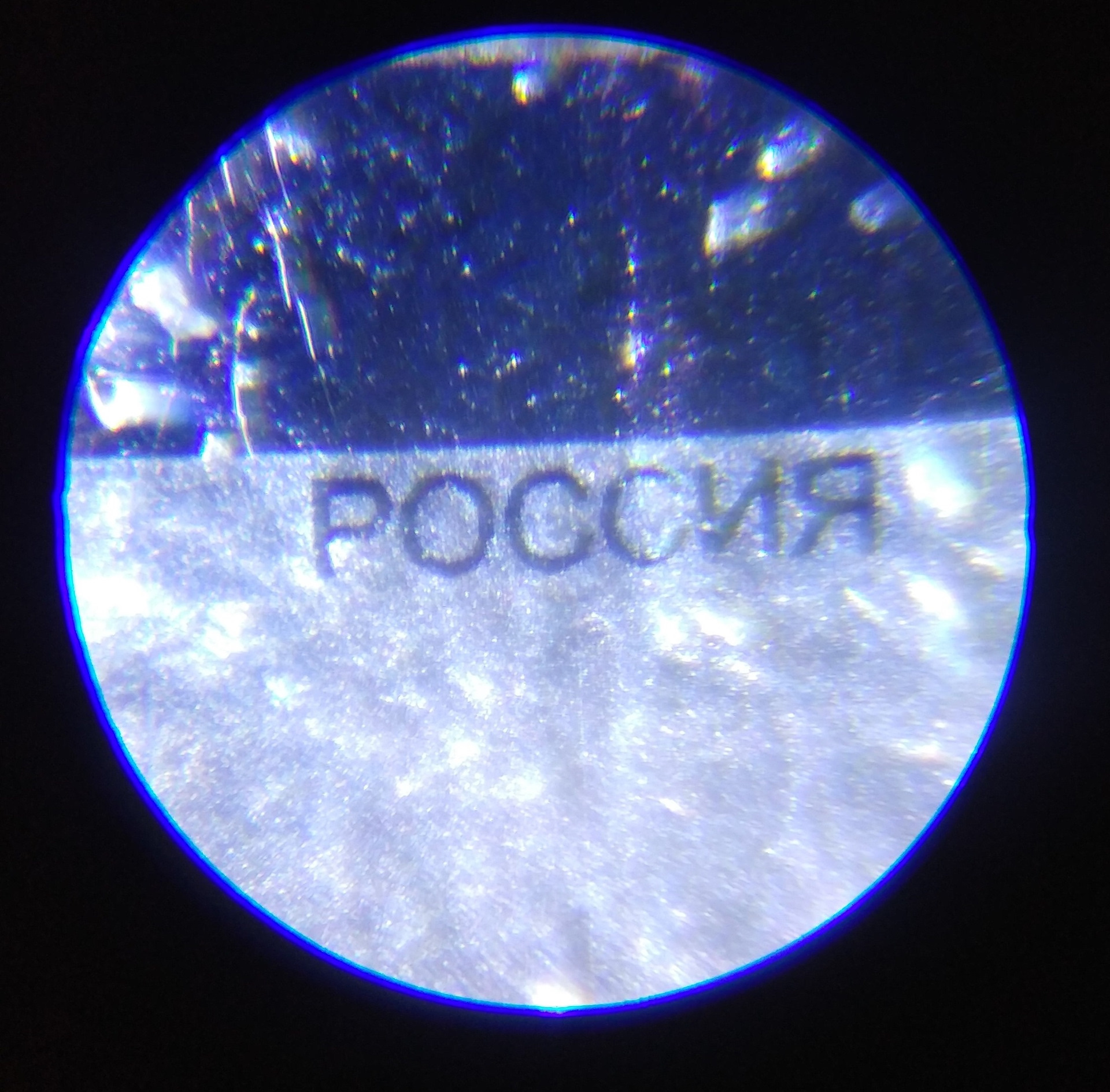 Карманный микроскоп откроет многое на голограмме – вы увидите то, что не видно невооруженным глазом. Например, на лобовом стекле автомобиля, который расположен по центру голограммы есть микротекст «РОССИЯ». Это не единственный микротекст на голограмме.