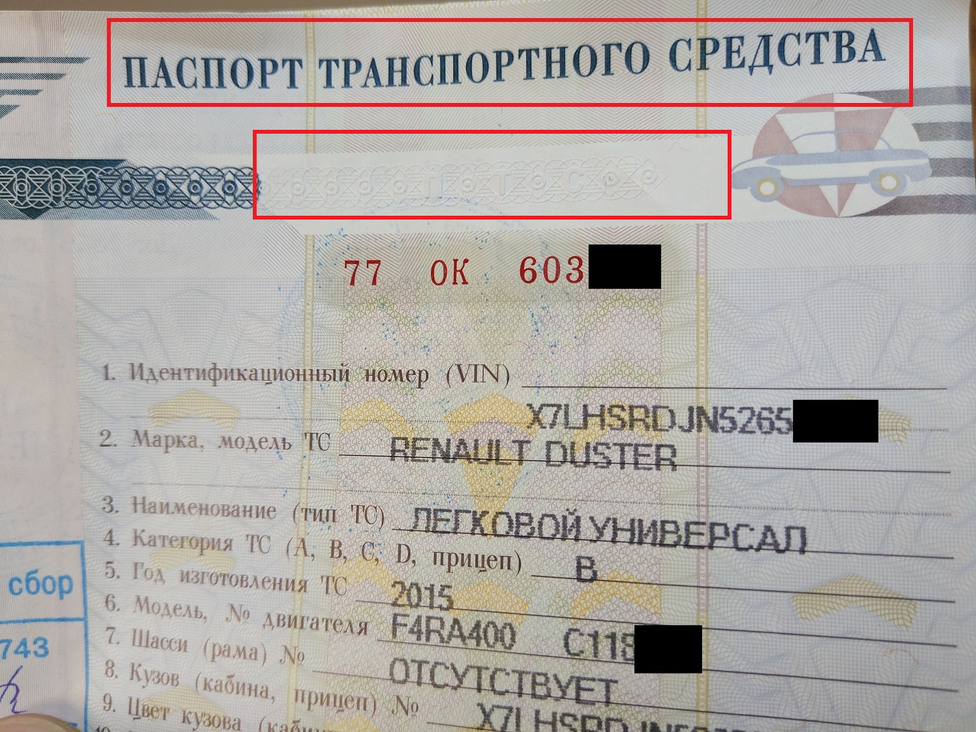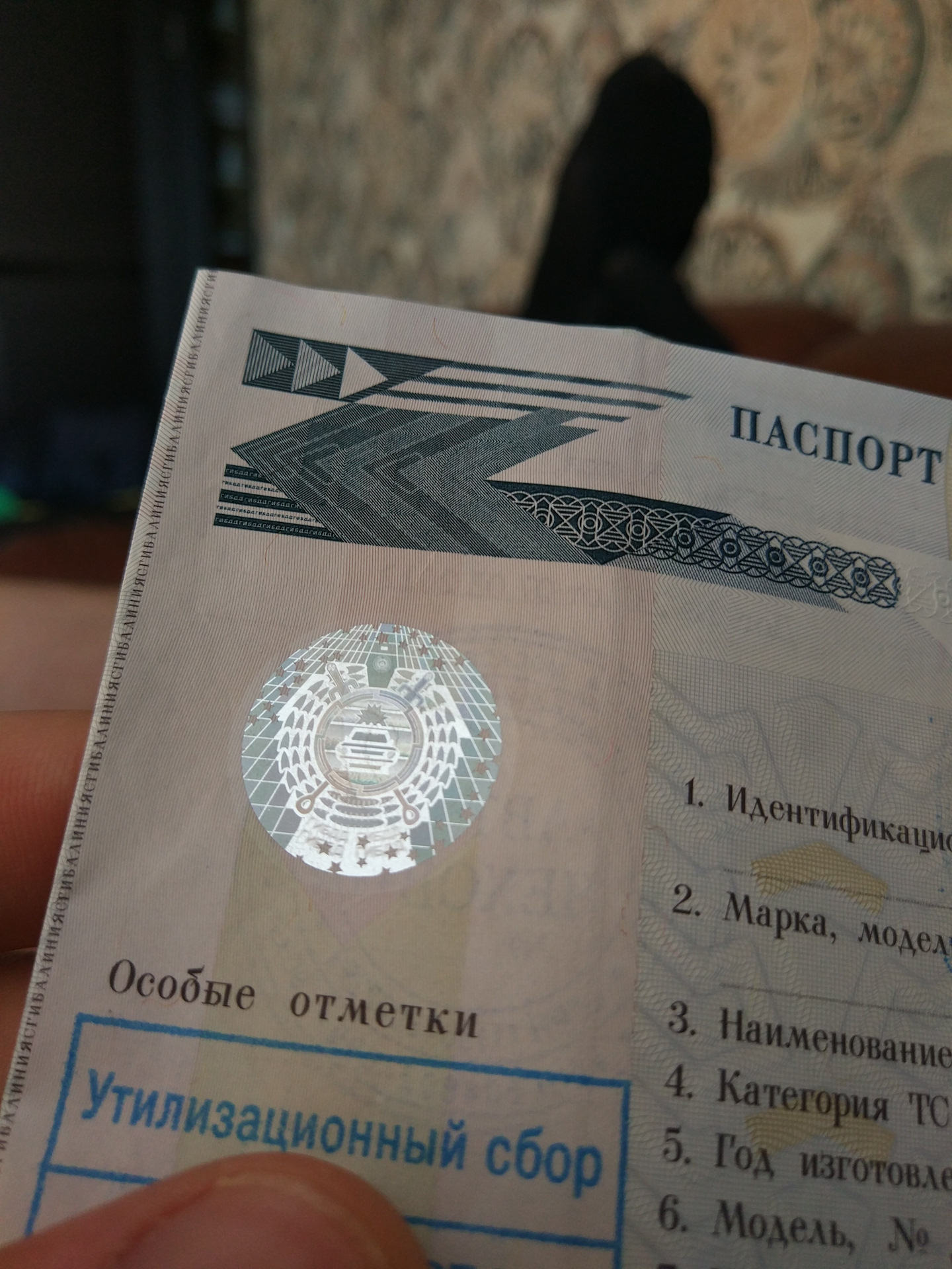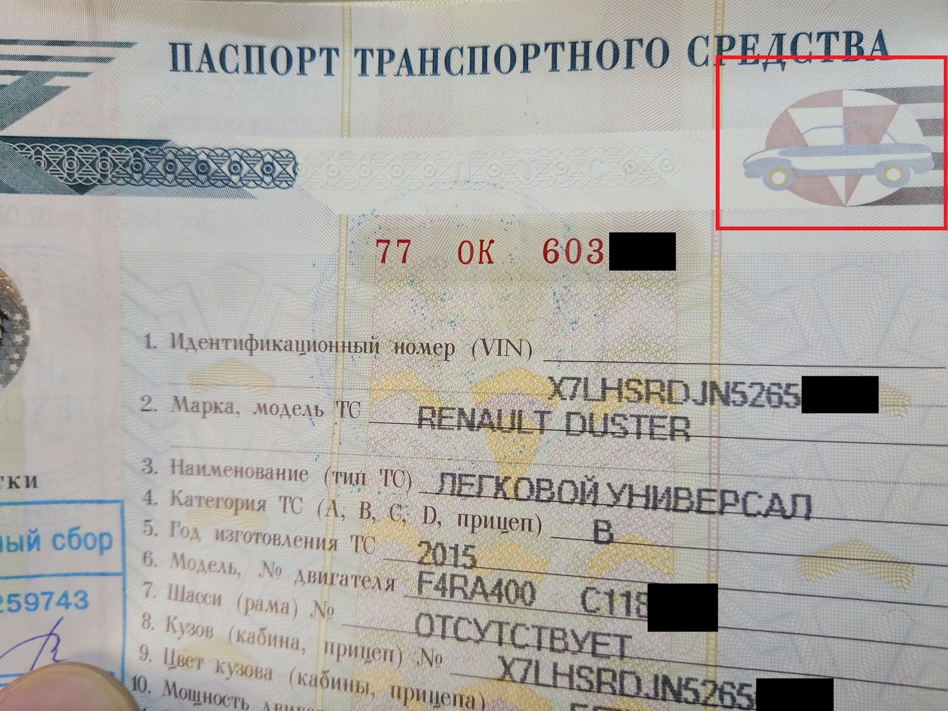 Проведите пальцем по заголовку документа «Паспорт транспортного средства», надпись выполнена объемным тиснением и это должно явно ощущаться при касании.