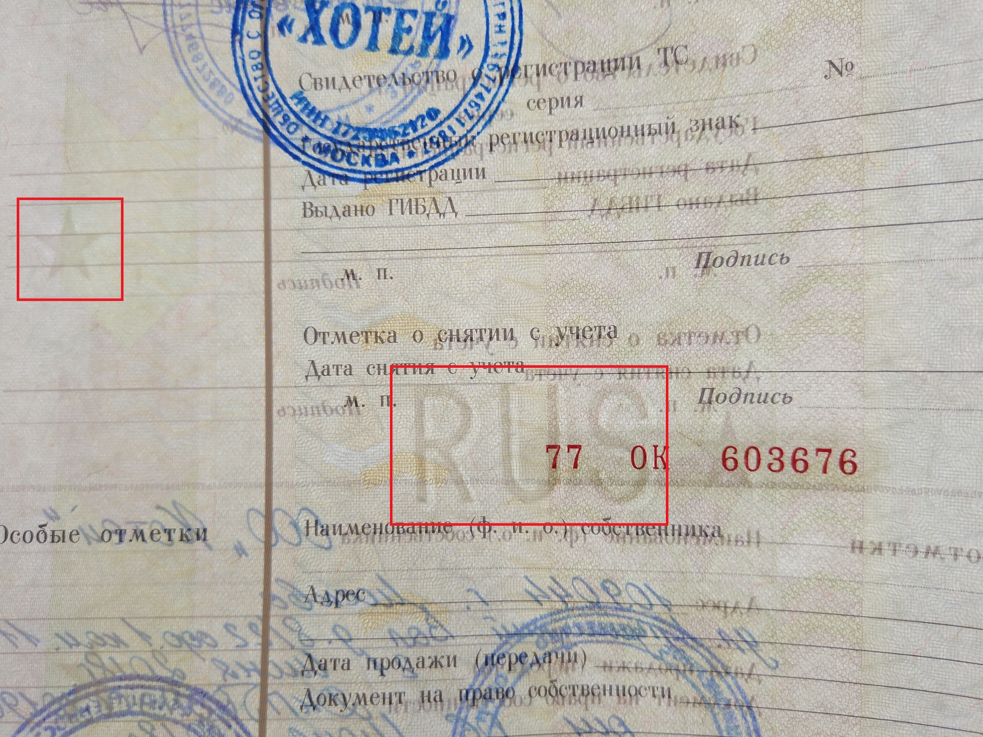 Любые проверки на подлинность не выявят никаких проблем, если сам бланк ПТС подлинный, но в него внесены несанкционированные изменения под конкретный автомобиль, так называемая «перемывка». Здесь еще раз пригодится карманный микроскоп, если у вас нет ИК-детектора. Микроскопом следует проверить не только элементы защиты бланка, но и текст документа, номер документа – на предмет корректировки (подтирания, химического вытравливания), если есть малейшие подозрения.