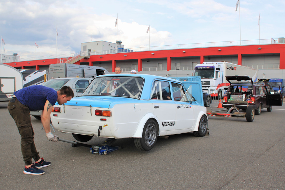 Спустя год после покупки работы были завершены, и мы встретились на Moscow Raceway. Я для фотосъемки, а Дима — для первых заездов по гоночному треку. Ведь новая не только машина, но и трасса: ранее на столь крупных и профессиональных кольцах ему ездить не доводилось. Тут выше скорости, а значит, выше нагрузка на все узлы свежесобранного болида. Так, во время первой же тестовой сессии «жига» едва не потеряла колесо, доковыляв до боксов на одной гайке! Причина оказалась в свежеокрашенных колесных дисках, привалочная плоскость которых перед установкой не была отшлифована. Кроме того, при торможении автомобиль тянет в сторону, возникли проблемы с переключением передач, а телеметрия не работала, ввиду чего время кругов осталось тайной. Но это все мелочи, ведь в остальном тренировочный выезд прошел отлично — получилось «вкатиться» в машину и трассу. Пандемия, подкосившая все спортивно-массовые мероприятия, сыграла на руку, отсрочив первый этап чемпионата до 4 июля. Значит, есть время лучше подготовиться и устранить возникшие неполадки.