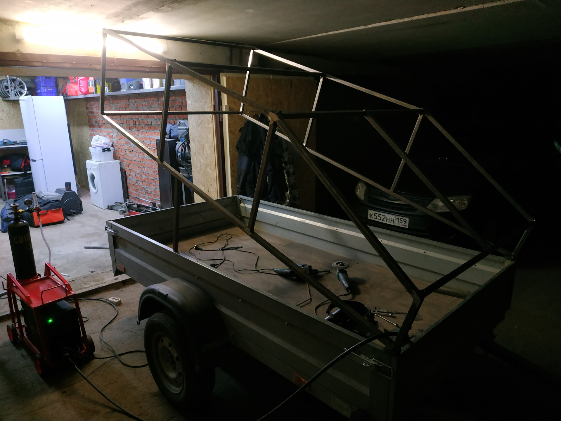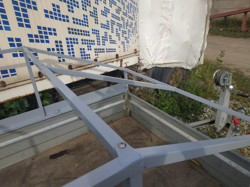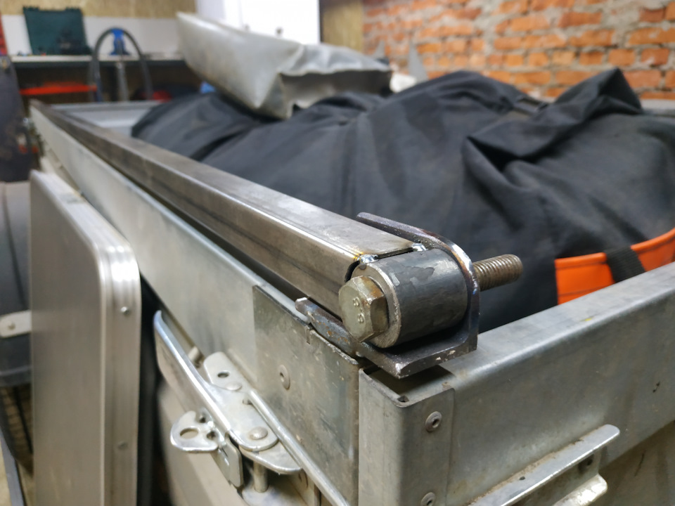 Прлностью сборка/разборка — укладываюсь в 20 минут. У переднего клапана на каркасе нет поперечной трубы, если открыть борт то хоть холодильник влезет. в эксплуатации за все это время проблем нет. Но машине тяжело и нет потребности в такой высоте. завтра поеду металл покупать, буду делать крышку высотой 300мм. из композита