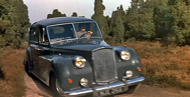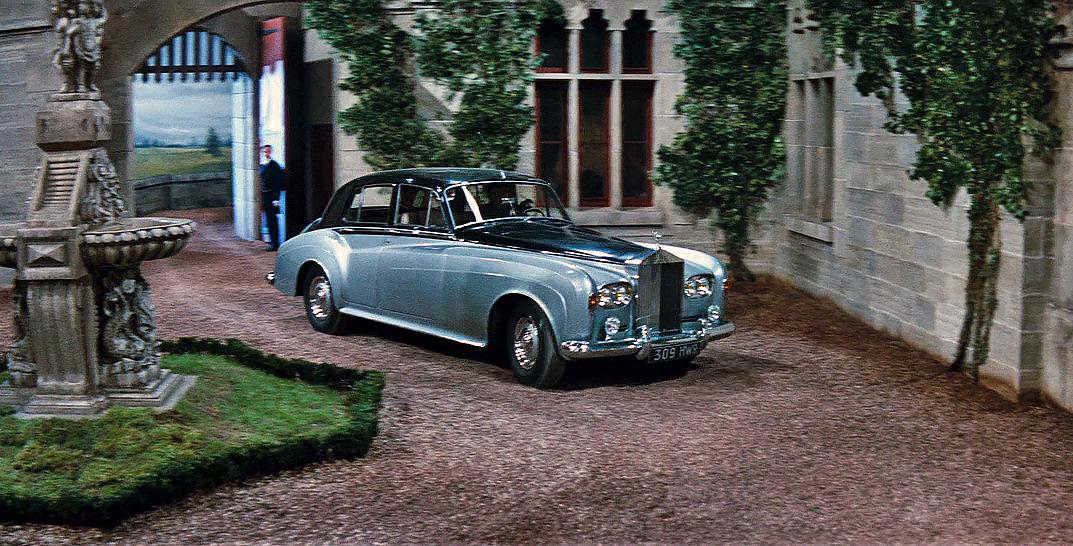 Но вот когда уже сюжет начинает разворачиваться, то что мы видим? А видим мы то, что меньше всего ожидали – автомобили с рулем, расположенным слева! Можете сами убедиться! Вот во двор замка въезжает Rolls-Royce Silver Cloud владельца замка лорда Макрэшли. Руль на машине – слева.