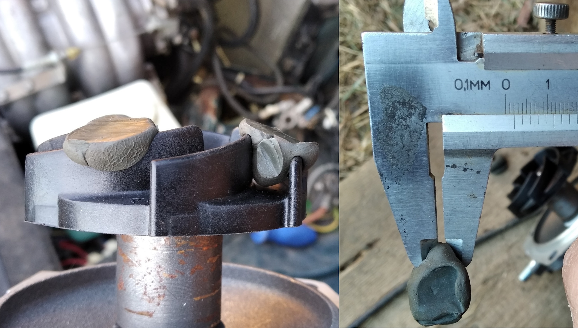 Перед установкой новой помпы обязательно проверяем зазор между лопатками крыльчатки и корпусом насоса, установив шарики из пластилина между лапатками с выступом в 2-3 мм. Устанавливаем крышку на место вместе с прокладкой и затягиваем, затем снимаем и с помощью штангенциркуля определяем получившийся зазор.