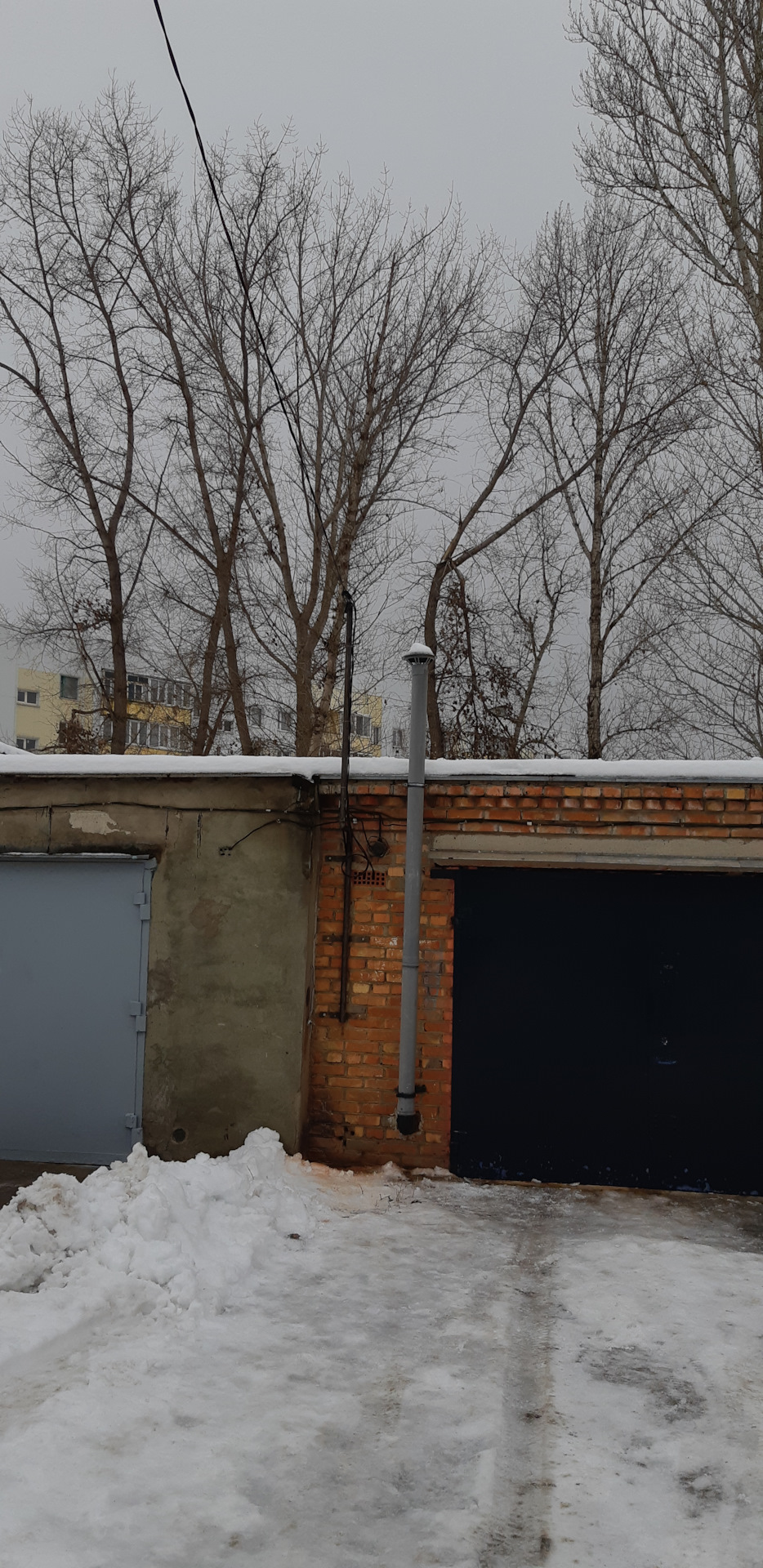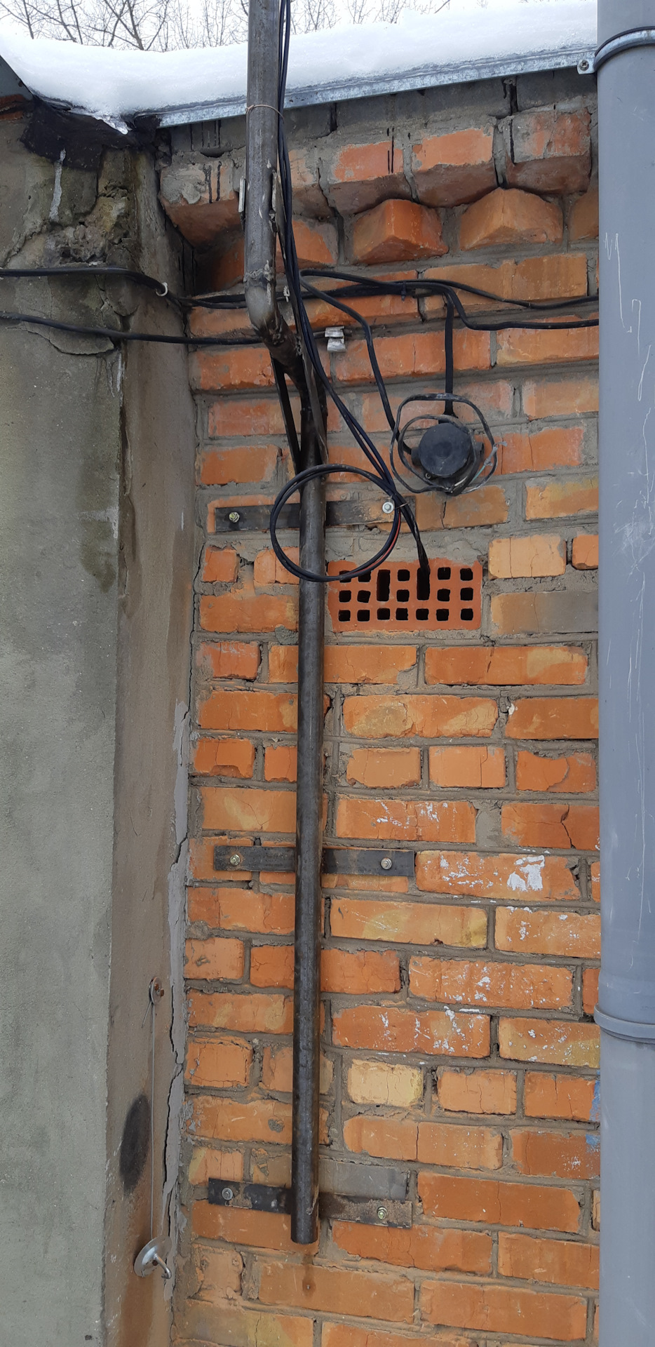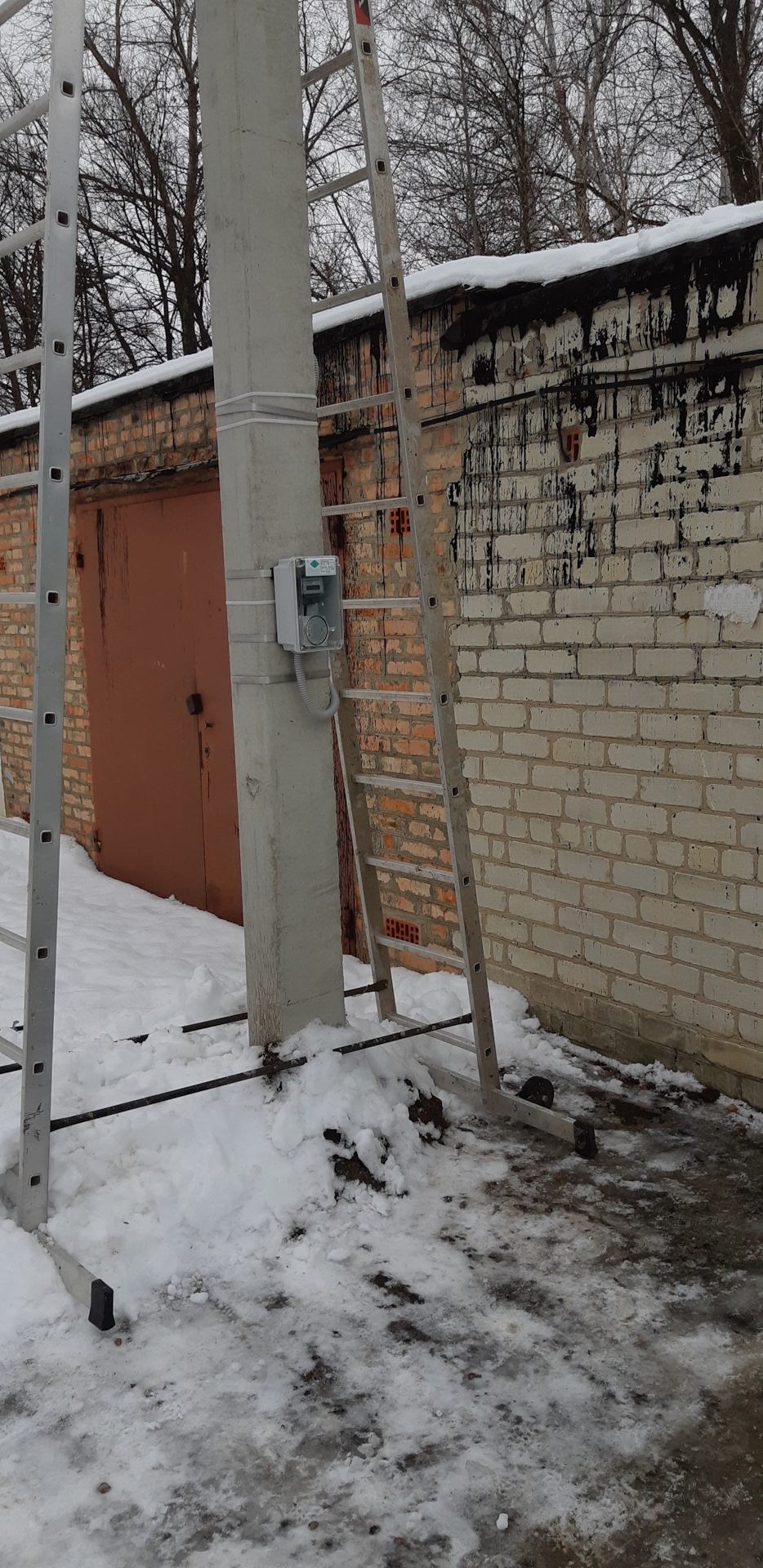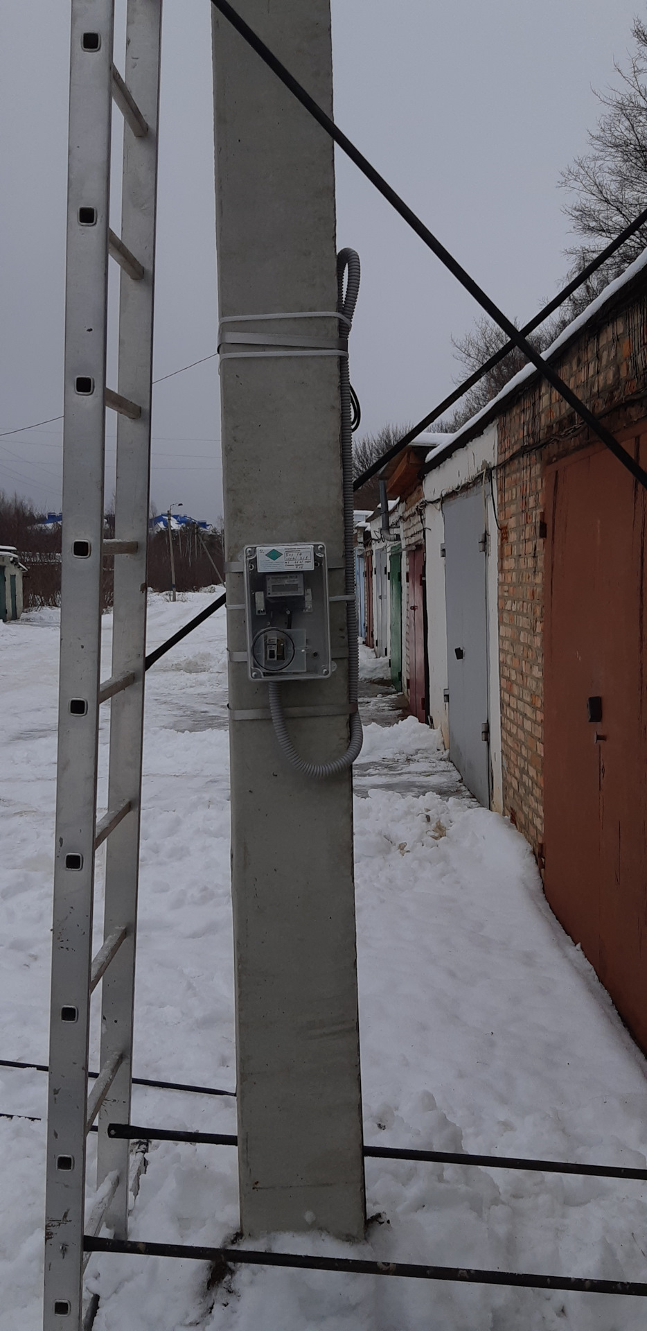 На втором гараже, я так понимаю, столб прямо возле гаража поставили?