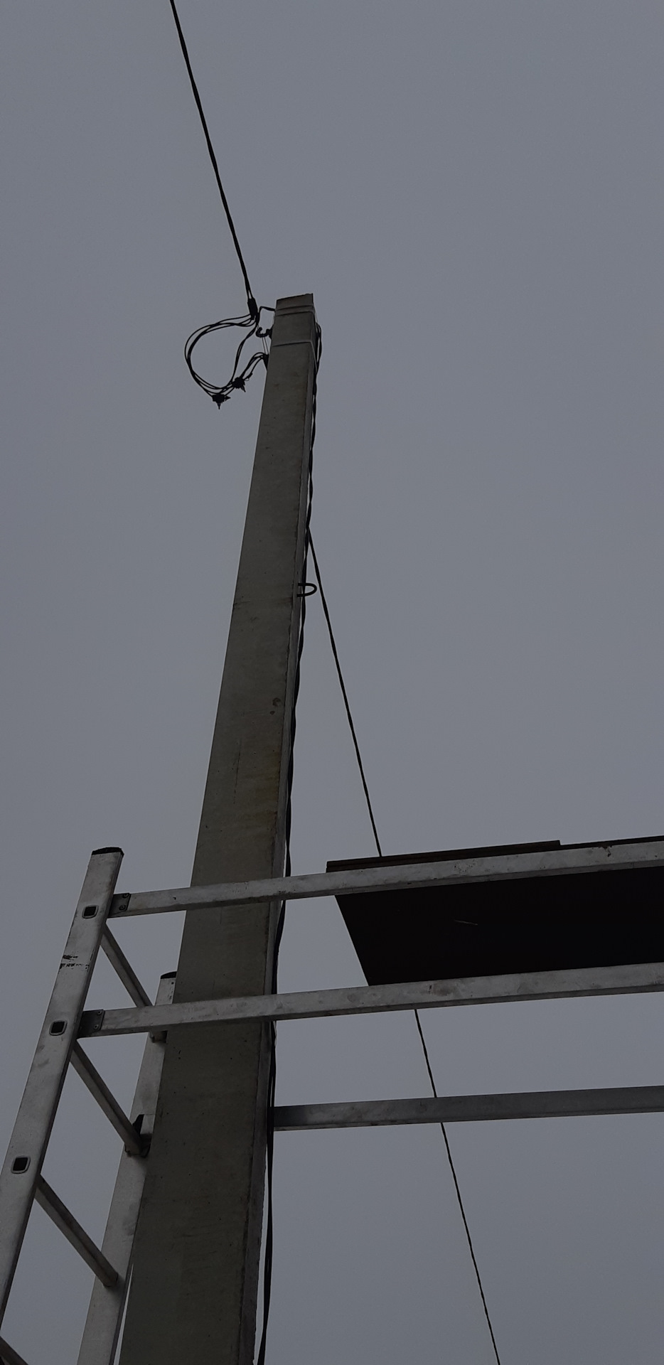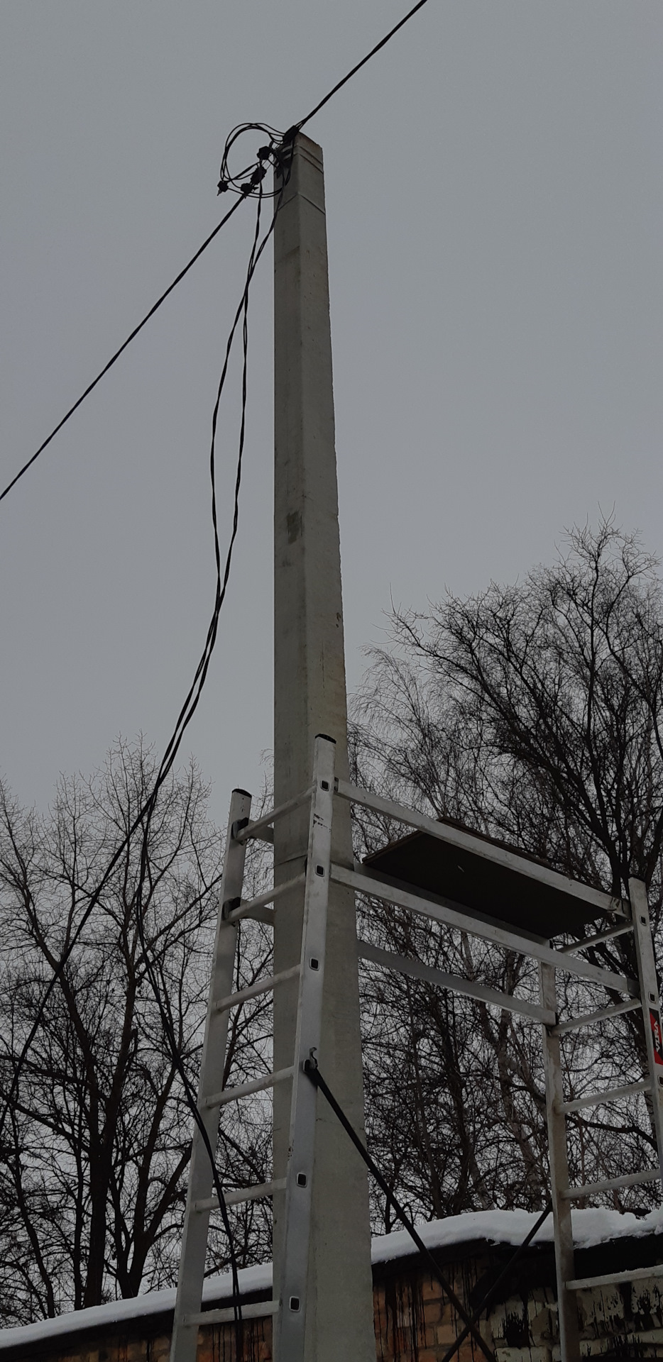 Я нанимаю электрика, и он мне со столба тянет проводку в гараж. Он же сварил гусак и приделал его к гаражу.