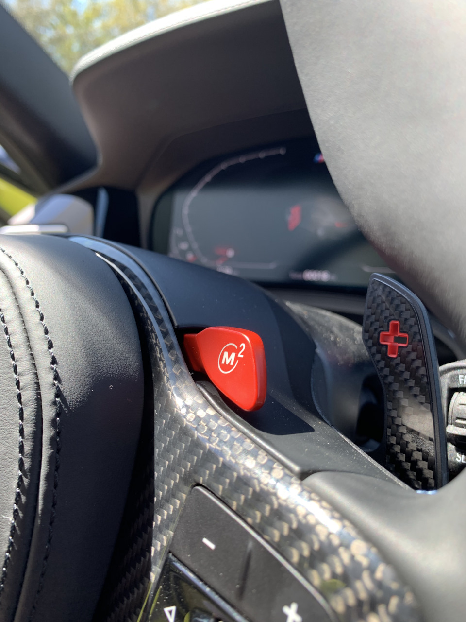 Салон, напротив, не отличается кардинально от обычной "тройки", кроме бросающихся в глаза кнопок М1\М2 на рулевом колесе и ковшеобразных кресел. Более радикальный вид салон приобретает при заказе опциональных карбоновых кресел,
