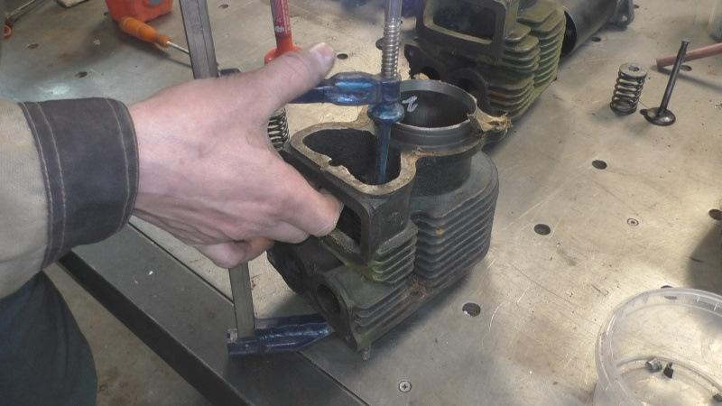 Далее я проточил на моём токарном станочке ТВ-4 головки цилиндров, что оказалось очень непростой задачей (отчёт в «Сделай Сам» здесь).
