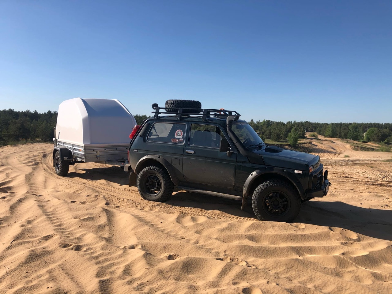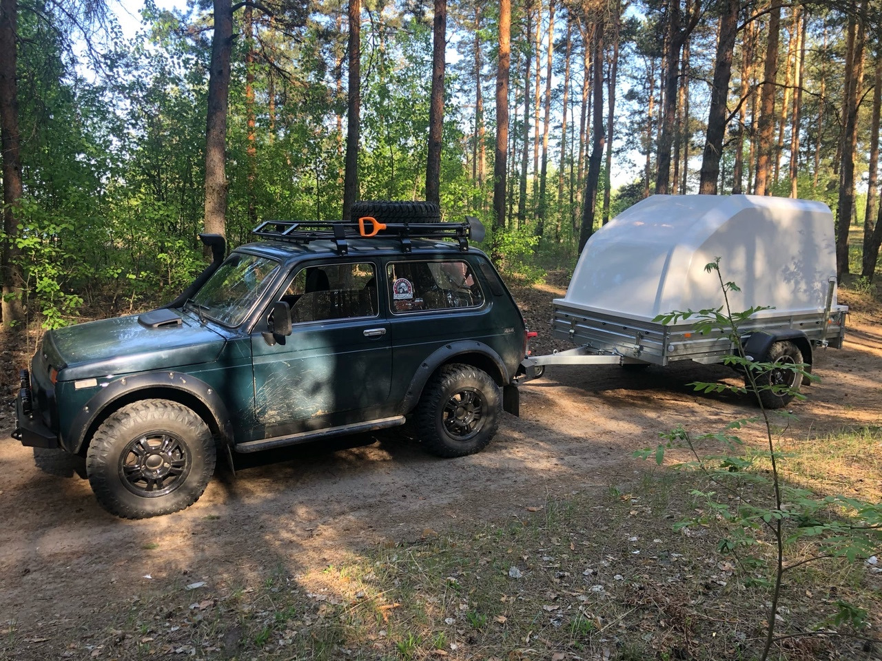 В принципе прицеп всем устраивал, не хватало только клиренса, при полной загрузке и буксировки Нивой на 29 колесах, зад прицепа того гляди и цеплялся за дорогу, при проезде по пересеченной местности.