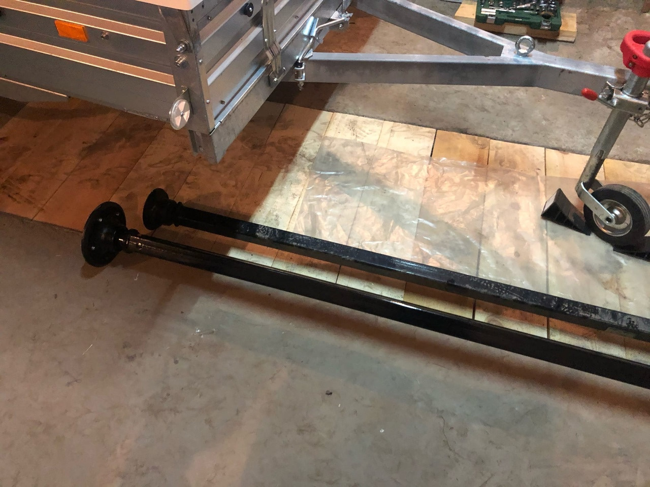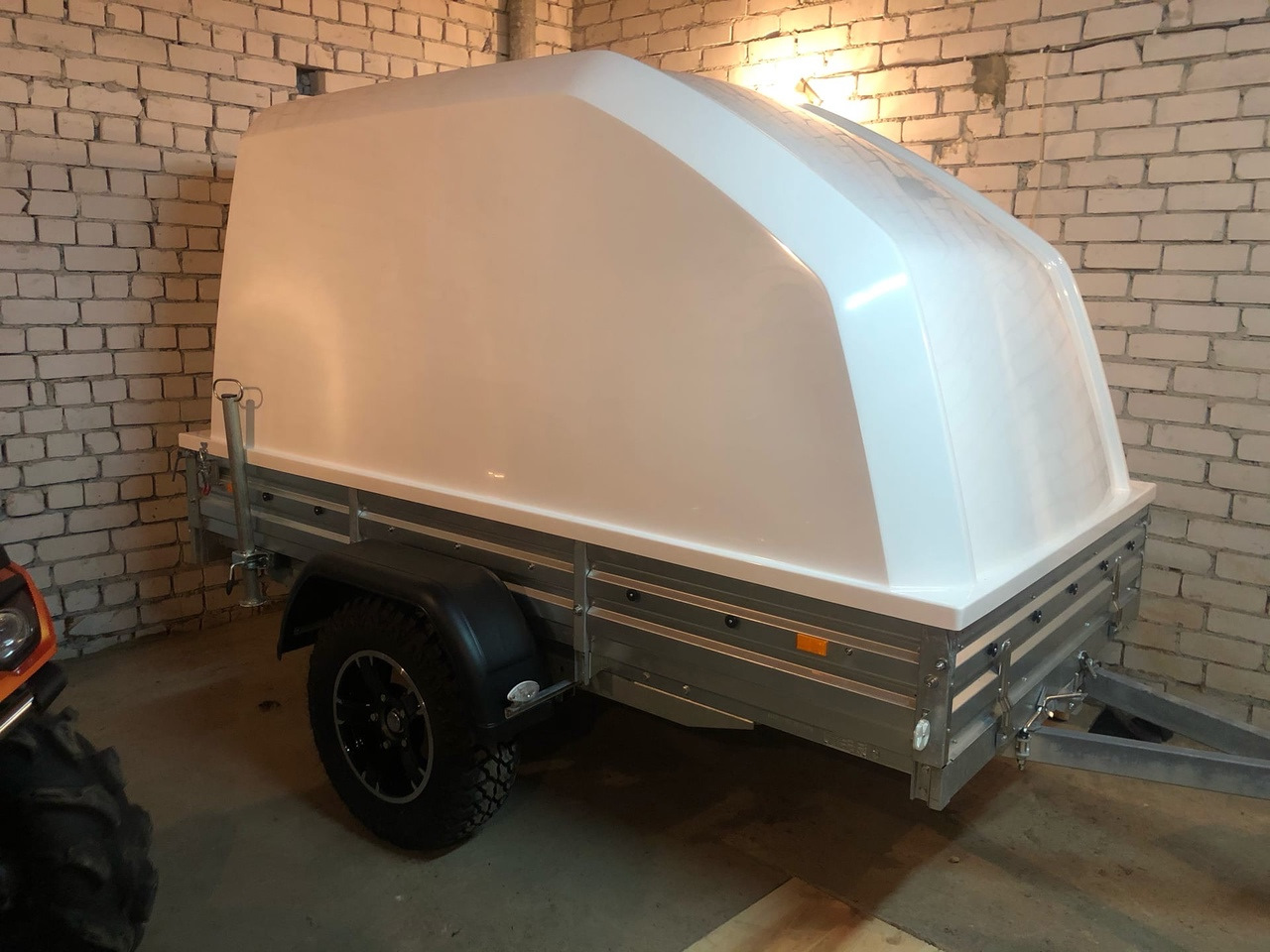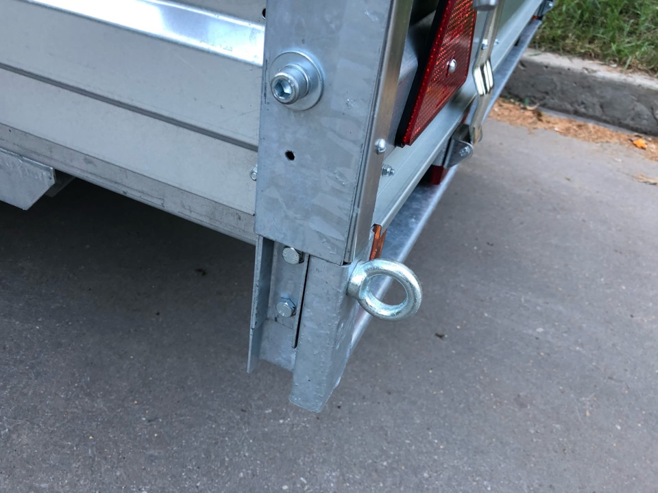 Ну и понеслось, сначала установил стеклопластиковую крышку, опорное колесо Al-CO, сзади установлены опорные стойки, внутри прицепа установил множество рымов для крепления груза.