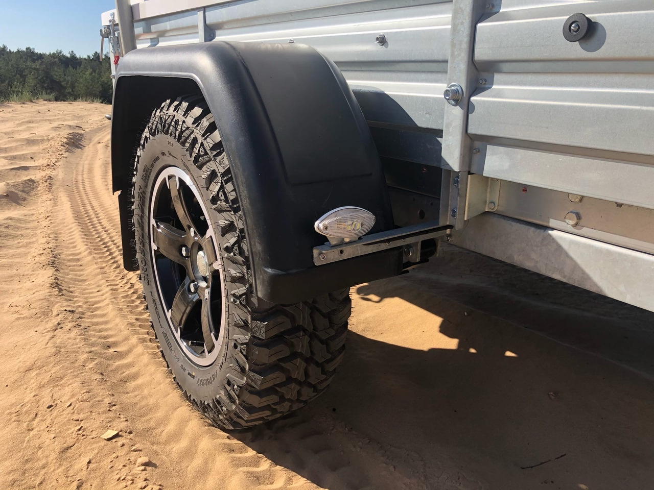 Все колеса что на авто что на прицепе в одном размере. На прицепе 2 запасных колеса. Пока в реализации сделать им штатные места. На дальняки вожу в прицепе.