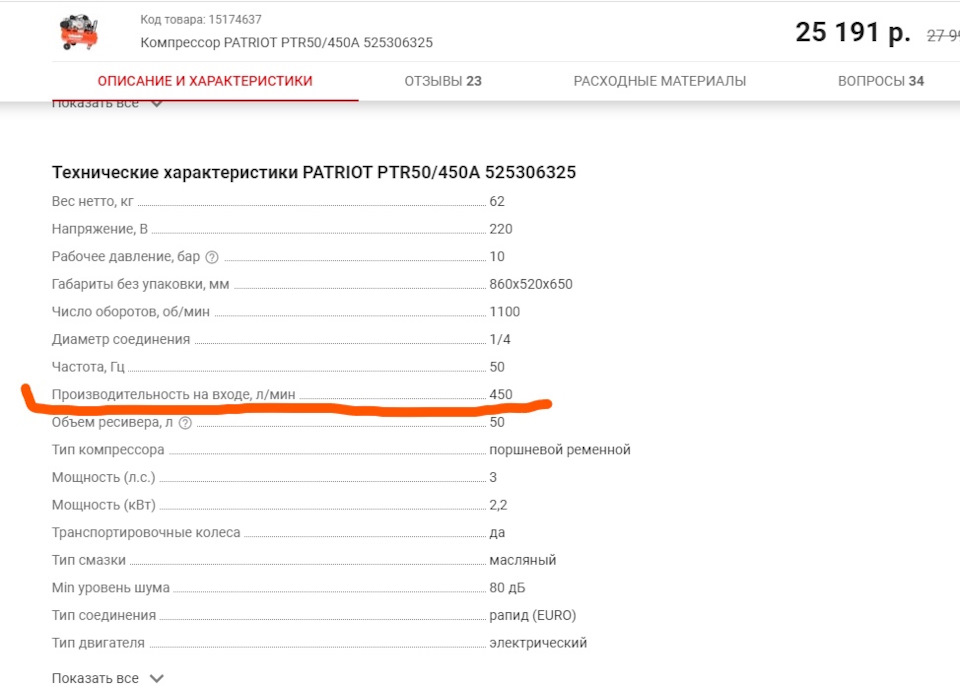 А сколько тогда производительность у компрессора с прямым приводом? Когда себе искал не нашел больше 450 литров с ресивером на 50л.