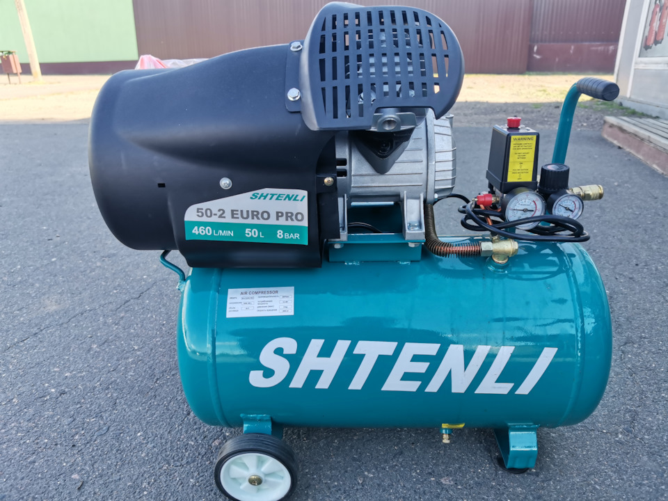 100 литров, ременной. Тихий, надёжный, ресурс хороший. С прямым приводом шумный, двигатель больше греется. 50 литров мало — чисто колеса подкачать да продуть что нибудь. Это из своего опыта. Лучше подкопить и купить Вещщь. По фирмам — сейчас всё Китай лепит…