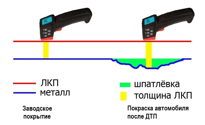 Но некоторые сильно переоценивают толщиномер или просто не умеют им пользоваться. Не раз сталкивался с жалобами продавца автомобиля, который рассказывает о покупателях с толщиномером. Мол, приезжает такой покупатель, однократно тыкает в крыло, видит цифру 200 и заключает, что машина битая. Разворачивается и уезжает под изумлённым взглядом продавца, который покрасил царапину на этом крыле.