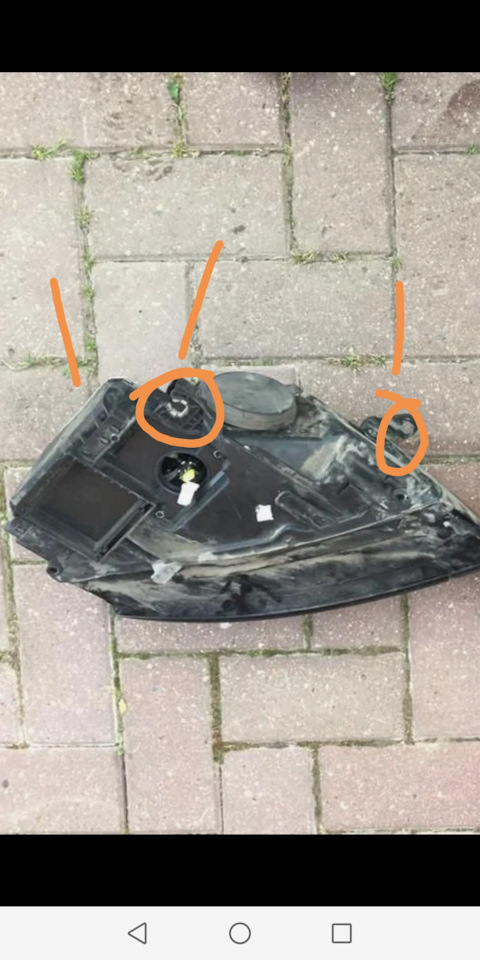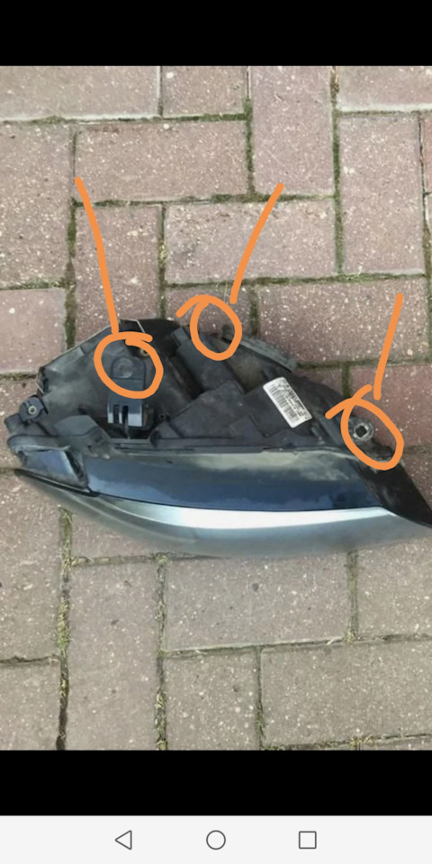 Вот обвел крепления, левое нижнее не видно, но вроде оно должно быть с этой стороны. Их отворачивает и фара вытаскивается.