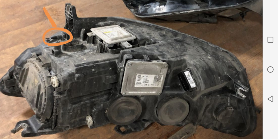 Это с обратной стороны фары. На верхнем фото этого крепления не видно, но я на него указал
