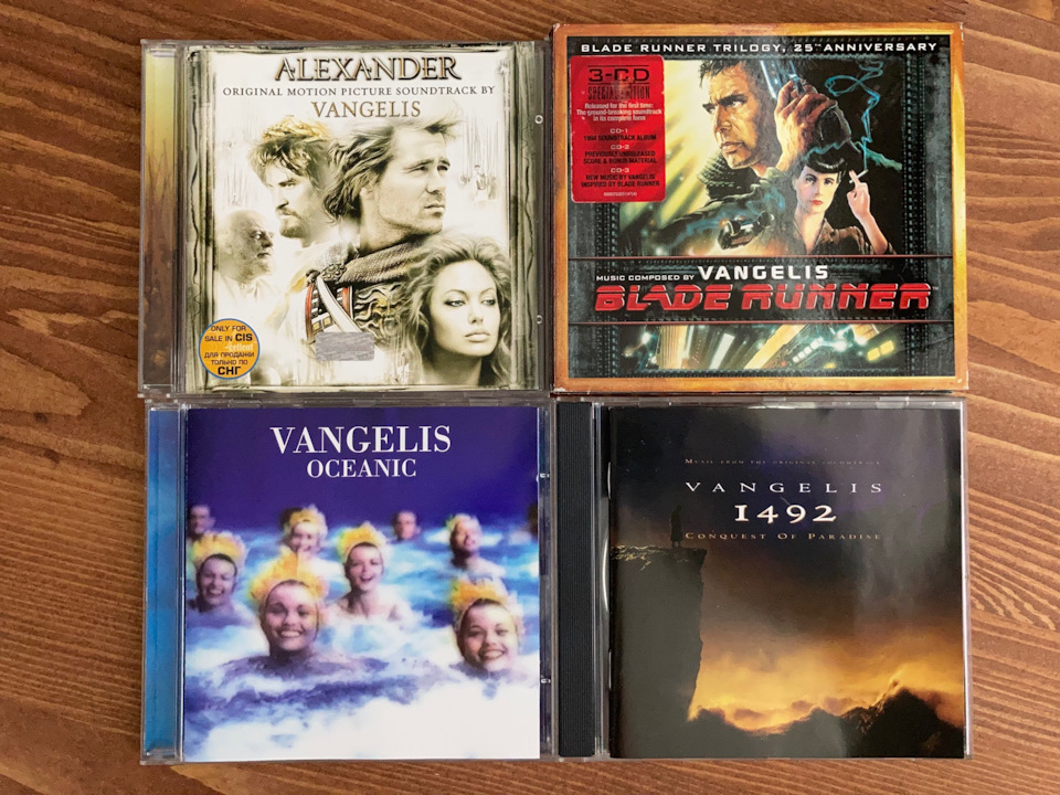 Тоже давно приметил Вангелиса. С начала 90-х начал его CD прикупать. Сейчас 29 альбомов в коллекции. Не так много, например, Kitaro — 49, + пластинки!