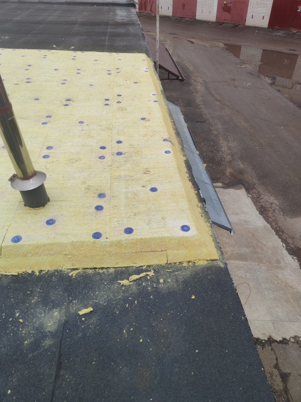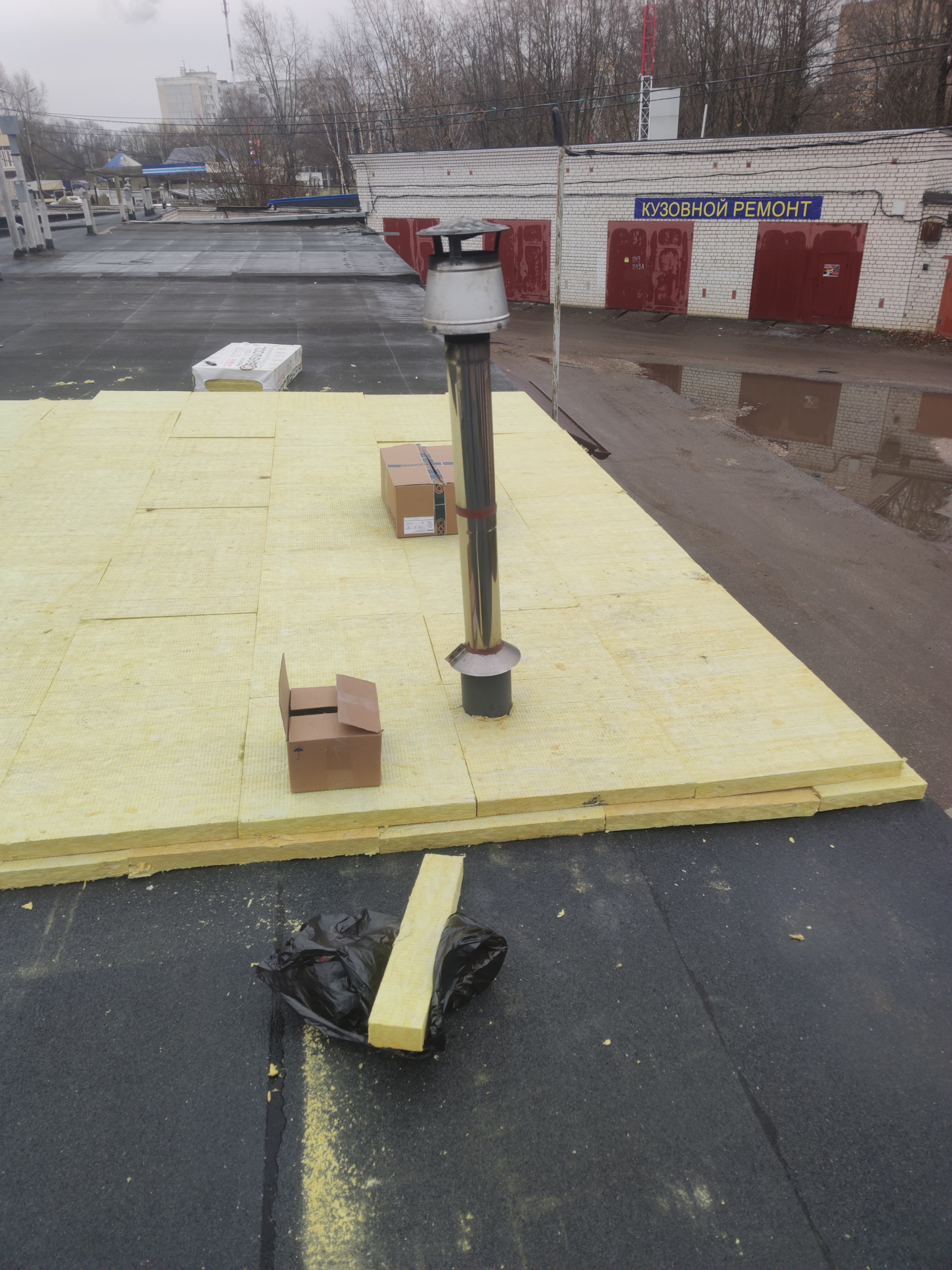 Все торговые комплексы с плоской крышей утеплены по такой технологии, только вместо рубероида там материал на основе резины, мембрана.