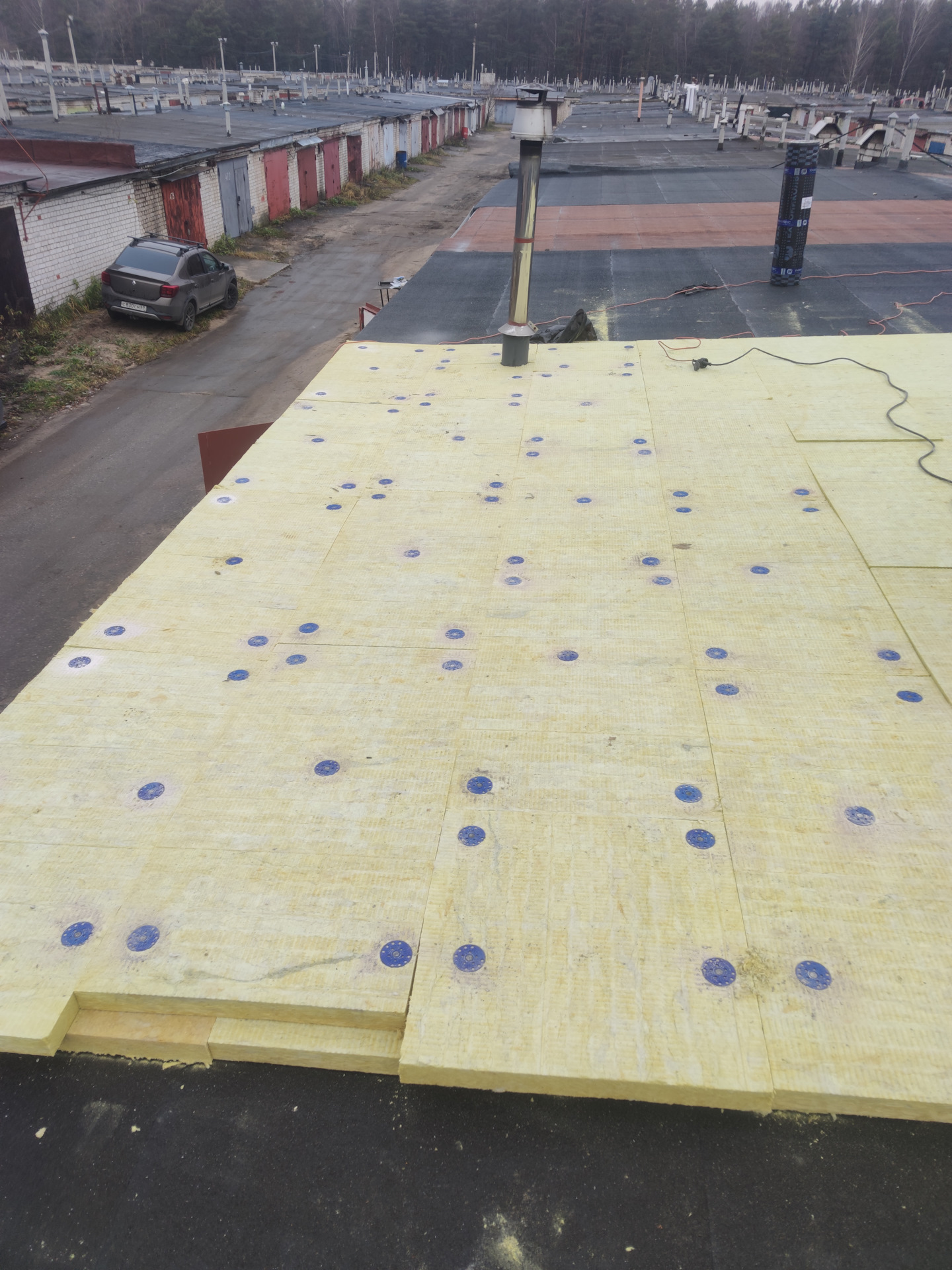 Мой утеплитель используют и с наплавляемой кровлей и с мембраной. Мембрану хорошо использовать на несколько гаражей сразу