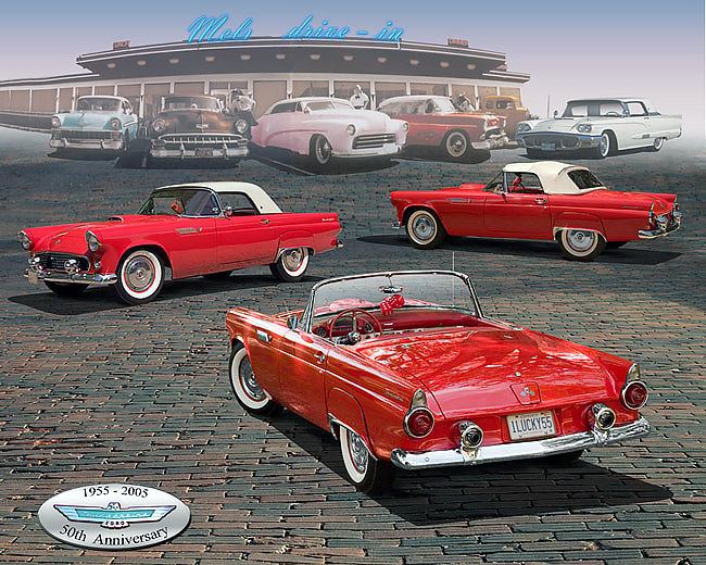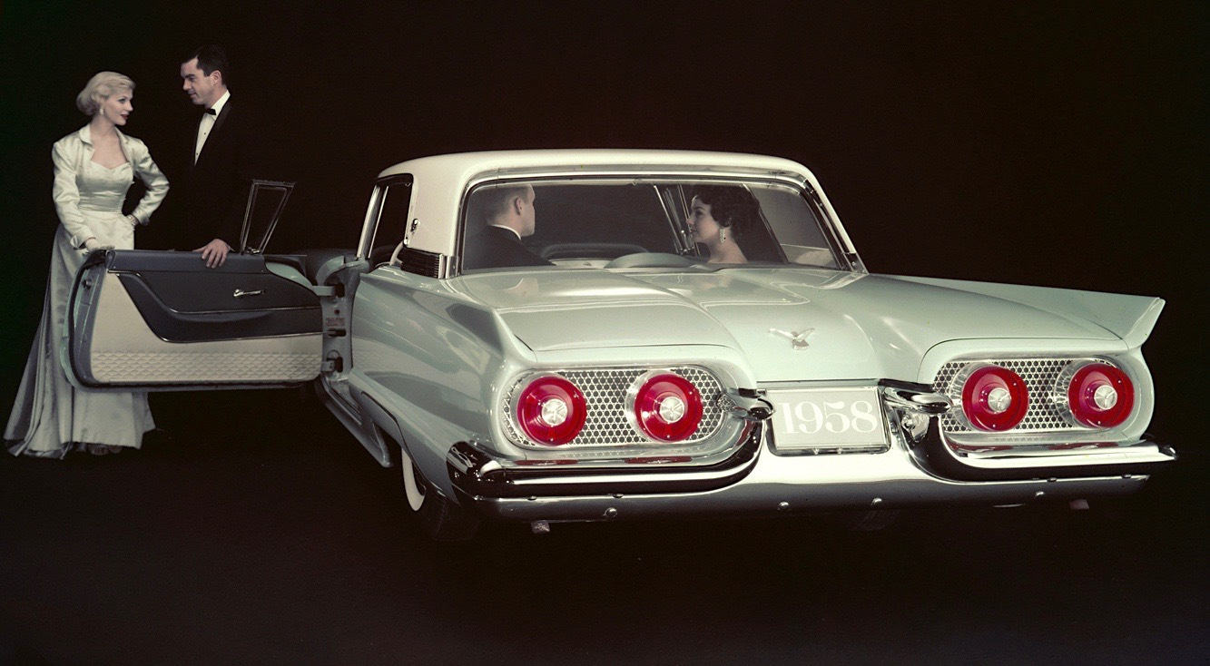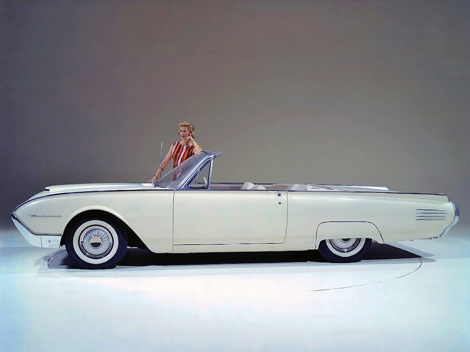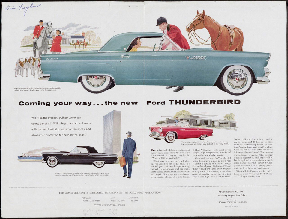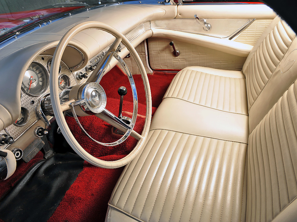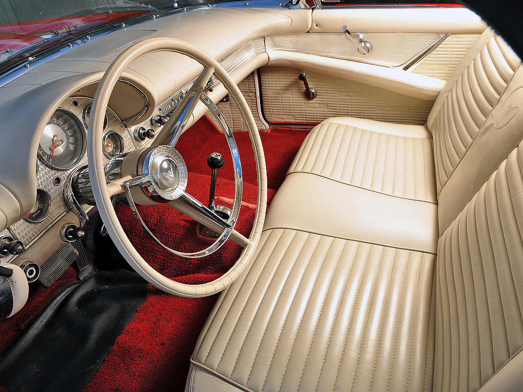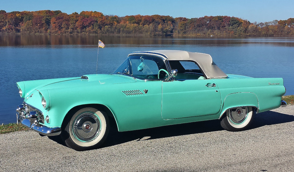 Самое первое поколение Ford-Thunderbird появилось в 1954 году как ответ на представленное годом ранее купе от конкурентов – Chevrolet-Corvette, плюс как ответ на успешную экспансию в США английских спортивных родстеров вроде MG, Jaguar, Triumph. Хотя разработка машины в обстановке секретности стартовала еще в 1952 году. Прототип показали в январе 1954 года на Детройтском автосалоне, производство стартовало в сентябре 1954 года, продажи начались в октябре 1954 года – как модель 1955 года.