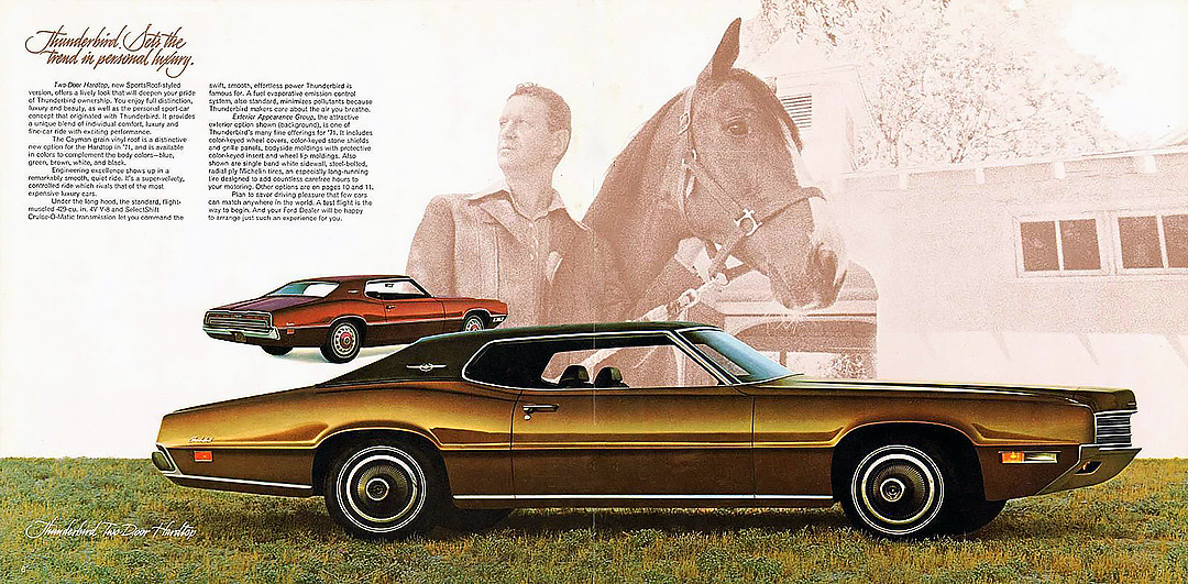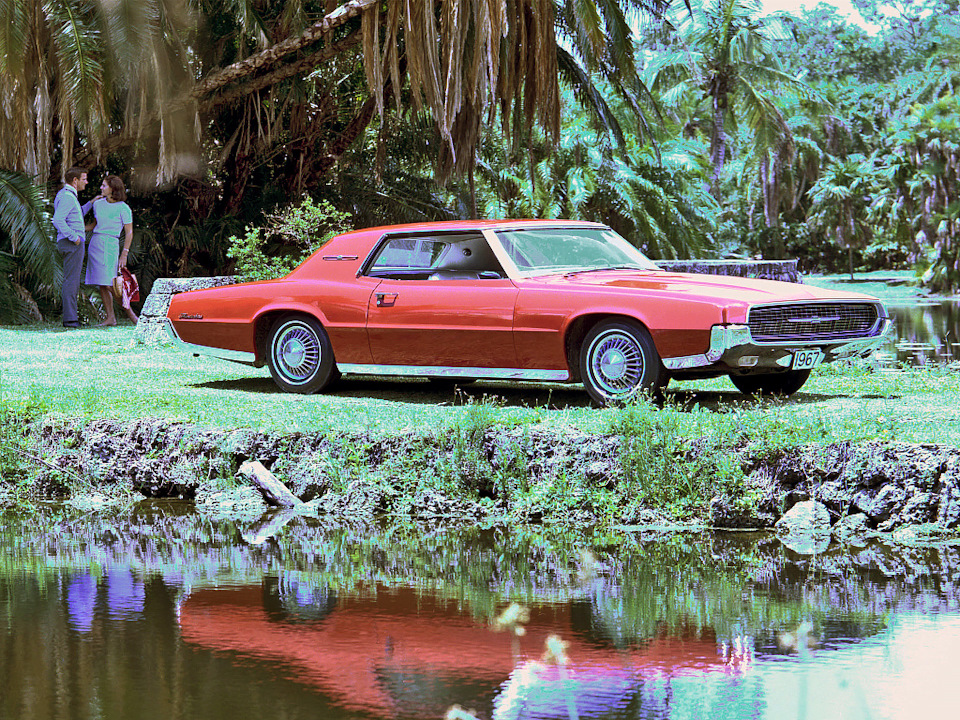Концепция пятого поколения, стартовавшего в 1967 модельном году, была серьезно пересмотрена. Чтобы не создавать внутренней конкуренции бешено популярному Ford-Mustang, компания решила увести Thunderbird в сторону большей роскоши и гламура. При этом машина совсем отдалилась от первоначальной философии. Автомобиль стал ближе к люксовым Lincoln. Двигатели — V8 объемом 6,4 либо 7,0 л в двух вариантах отдачи — итого три варианта.