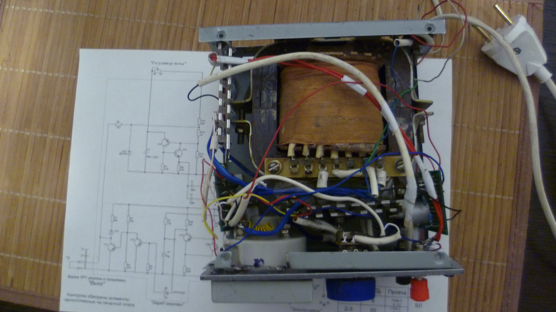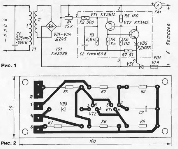 Я ее знаю! Плата управления тиристором) диодный мост, тиристор, плата и транс на 16в 8А. Но у нее нету «защиты от дурака» . Ну а схема выше по простоте не чем не уступает этой! А если есть залежи старых деталей, то собрать на раз плюнуть!