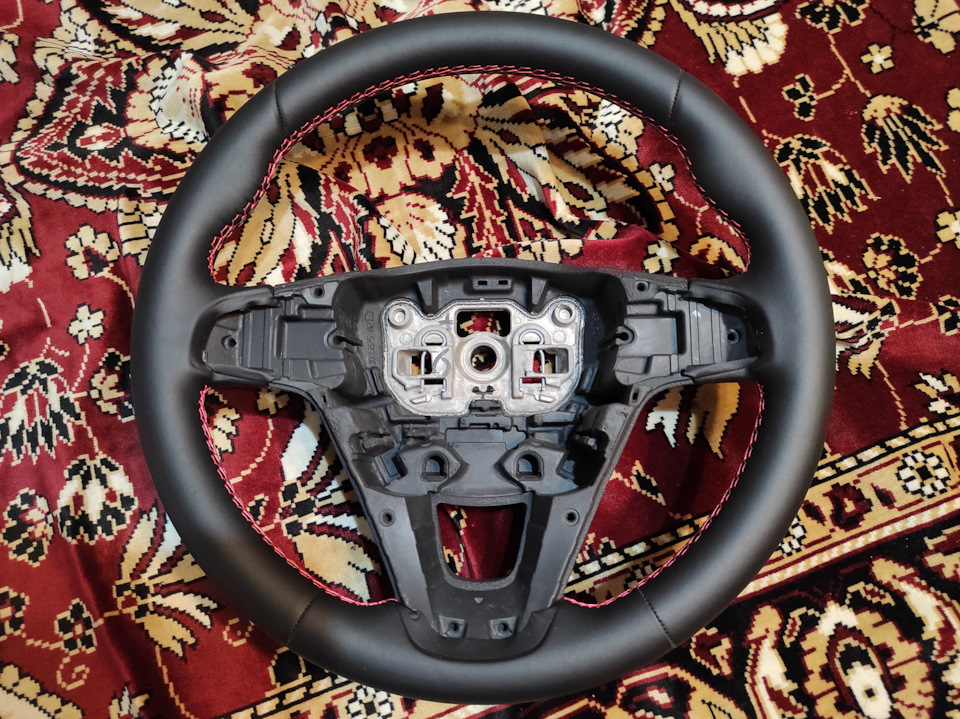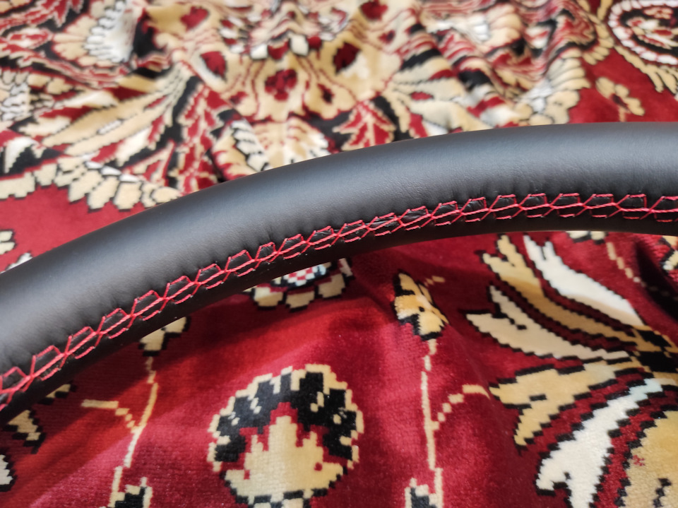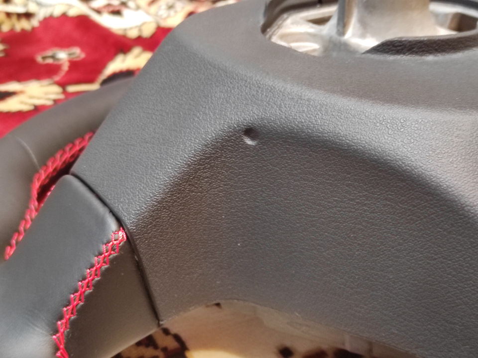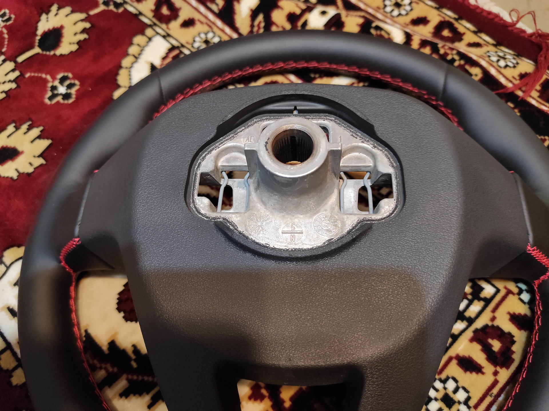 Ну и сам руль. Куплен на Авито. Юбилейная серия в заводской коже с красной прострочкой. На тот момент он стоил 4500 рублей.