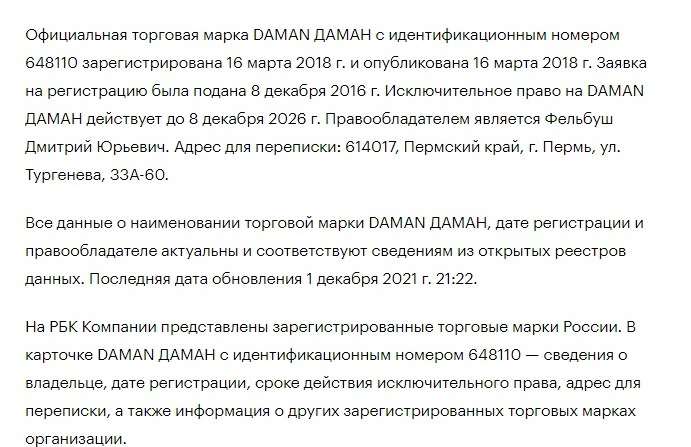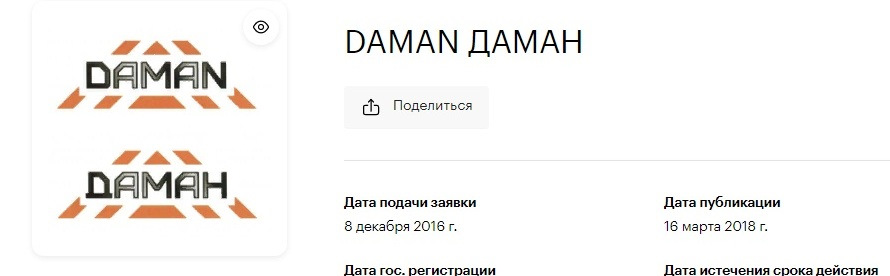 Торговая марка DAMAN от одного и того же перекупа из Перми, что и марка BRAIT.