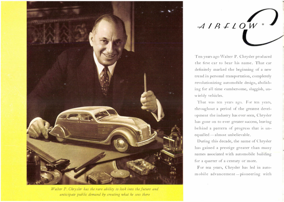 В этой статье речь пойдет об одном из самых революционных американских автомобилей 1930-х годов – и одновременно об одном из самых провальных. Chrysler Airflow (“воздушный поток”) появился в 1934 году и стал одним из первых, если не первым, серийным автомобилем с обтекаемым кузовом, спроектированным с учетом требований аэродинамики.