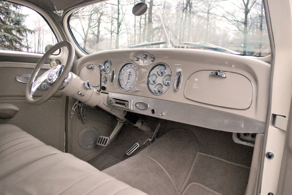 Колесная база была увеличена, а уровень пола понижен, в результате получился весьма просторный салон, причем на переднем диване могло разместиться три человека, и на заднем ряду было много места. Доступ в салон обеспечивали широкие двери, задние распахивались против хода. Задние колеса были прикрыты обтекаемыми колпаками. Из традиционных решений во внешнем облике можно отметить лобовое стекло из двух плоских половинок.