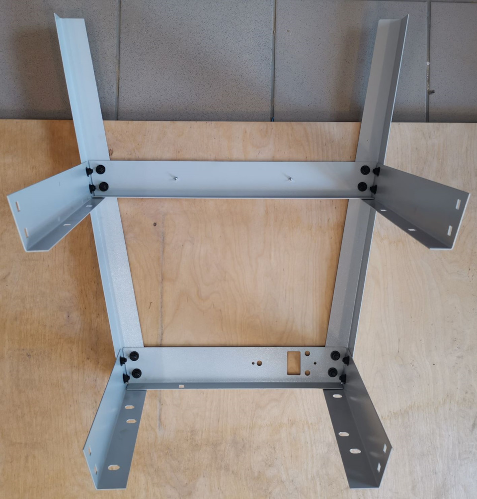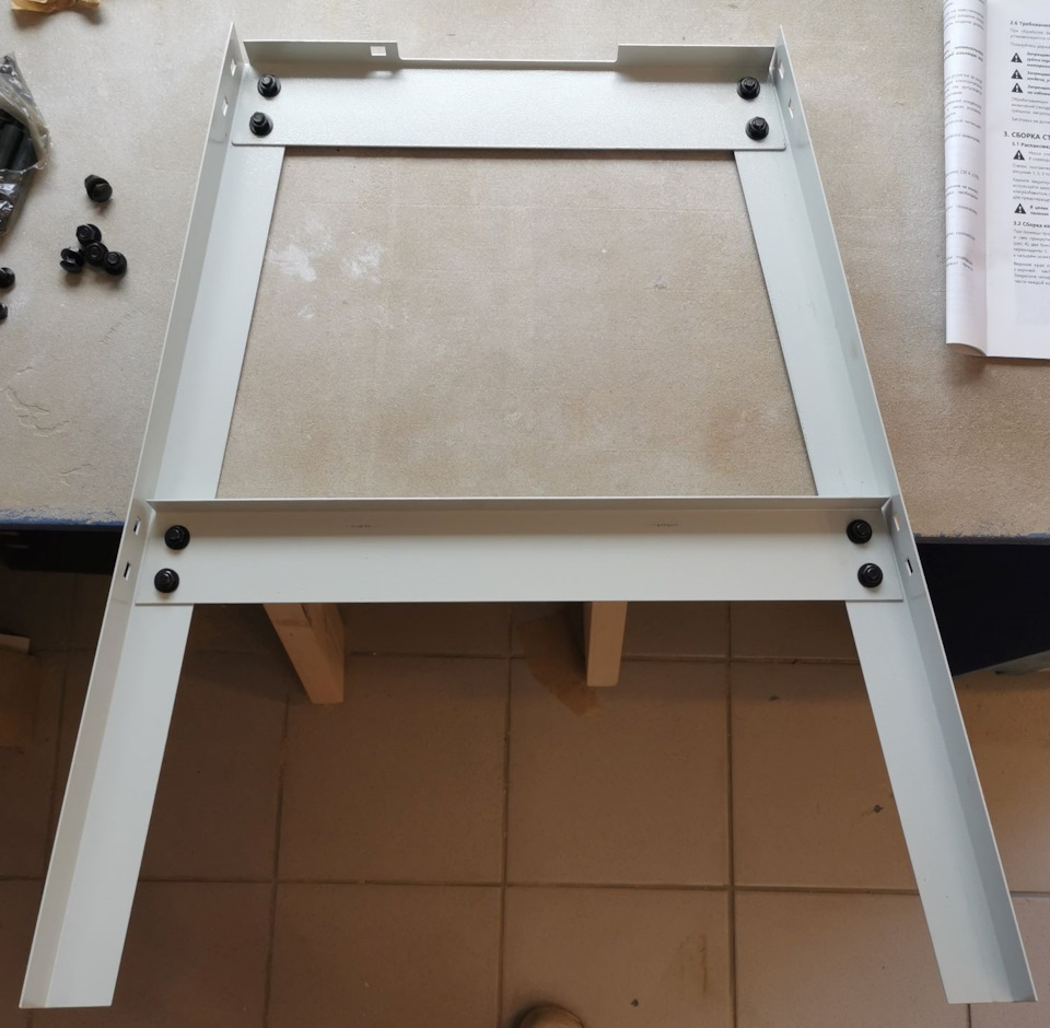 Далее совмещаем две части основания в одно целое. После чего я выставил его на месте где будет стоять станок и насколько возможно выровнил по уровню все грани. После чего протянул все болты.