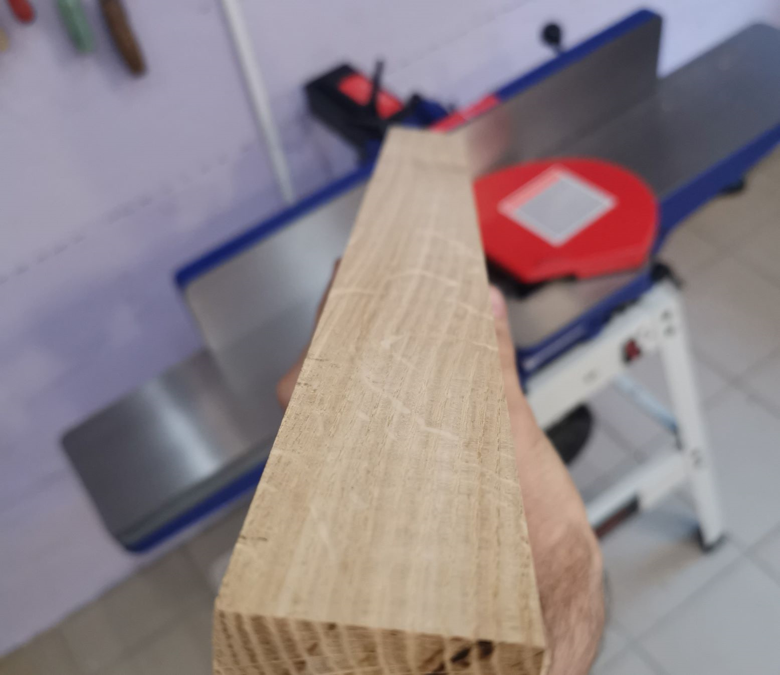 Хочу сделать отдельно замечание для antraks, посмотри насколько крошечным выглядит данный станок, деталь которая на фото имеет длину 1.7 метра и честно говоря она уже великовата. Я бы сказал так — длина фуговального станка это и есть нормальный максимум по длине заготовки, которую на нем можно обрабатывать т.е. если купить условный JET JSJ-6, придется ограничиться в работе материалом до метра, по сути как в рейсмусе прогнать.