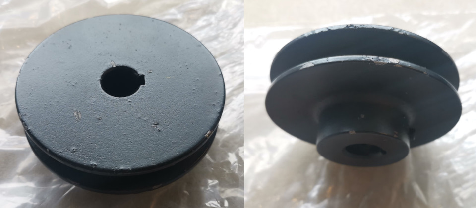 Ну а это самая больная тема, которая тормознула меня минут на 30 наверное. На фото шкив мотора, в разных ракурсах. Такое чувство, что деталь макнули в краску, причем не сдувая стружку и поставили сушиться, поэтом на одной стороне на гранях остались отпечатки. Самое печальное, я не смог одеть её на вал мотора, она просто неналезает. Связался с продавцом, он сказал что в понедельник можно будет связаться с инженером Белмаша и все решим, но в целом все должно быть нормально. На видео с официального сайта данный шкив забивают резиновым молотком. Я все же решил немного почистить внутреннее отверстие шкива от краски, после чего он замечательно сел на вал. Дефекты покраски я убрал все той же мелкой шкуркой (включил мотор без ремня).