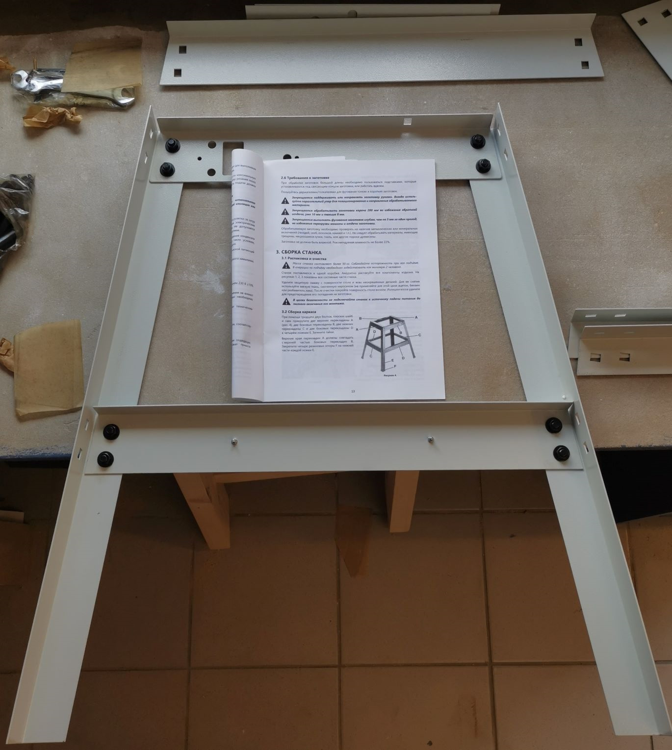 Собираем вторую половину основания. Везде используются одинаковые болты с шайбой и гайкой. Качество крепежа и основания хорошее. Момент важный т.к. создалось впечатление что разные части станка делали на разных заводах.