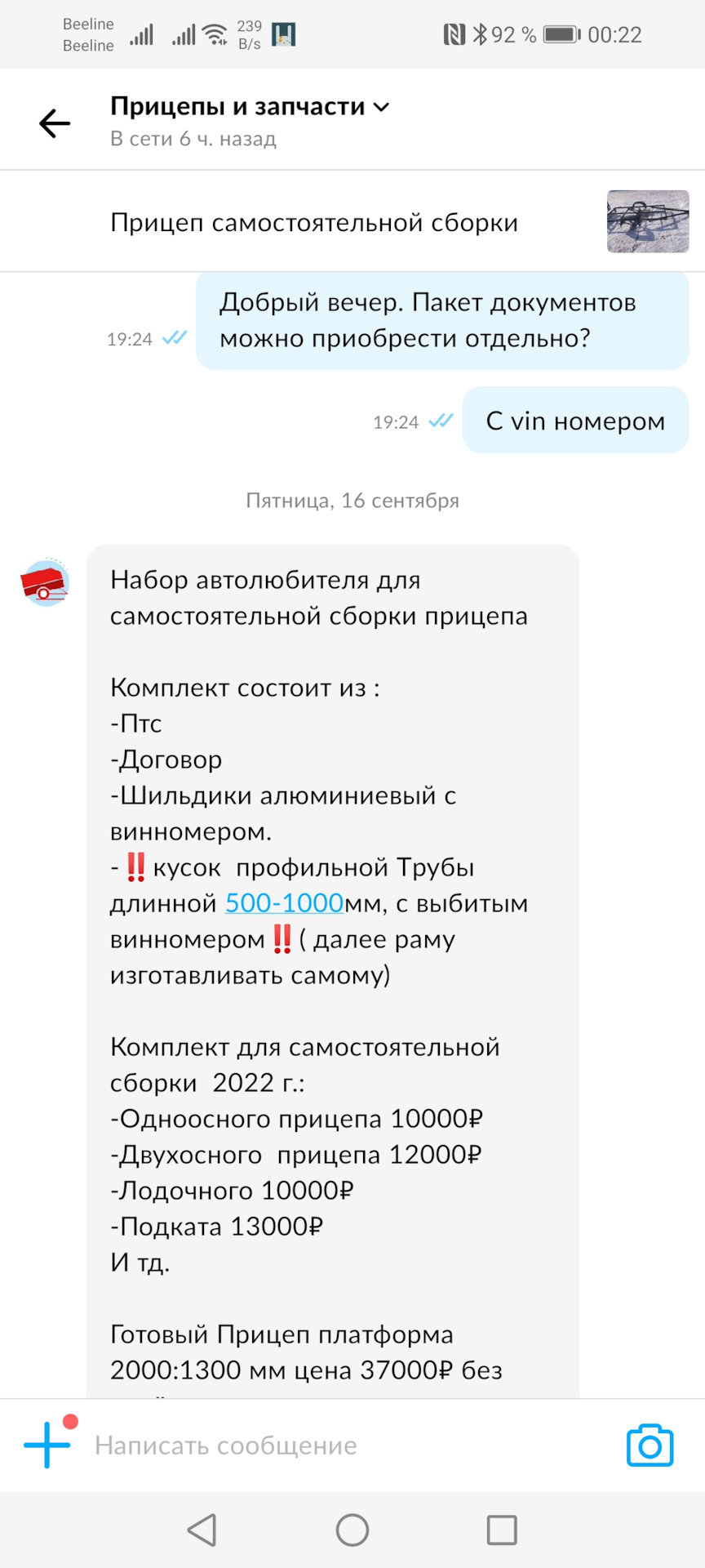 Это все за 10 т.р. ? При чем как доставлять раму прицепа для экспертизы стоимость доставки ? Сколько стоит набивка вин номера ?