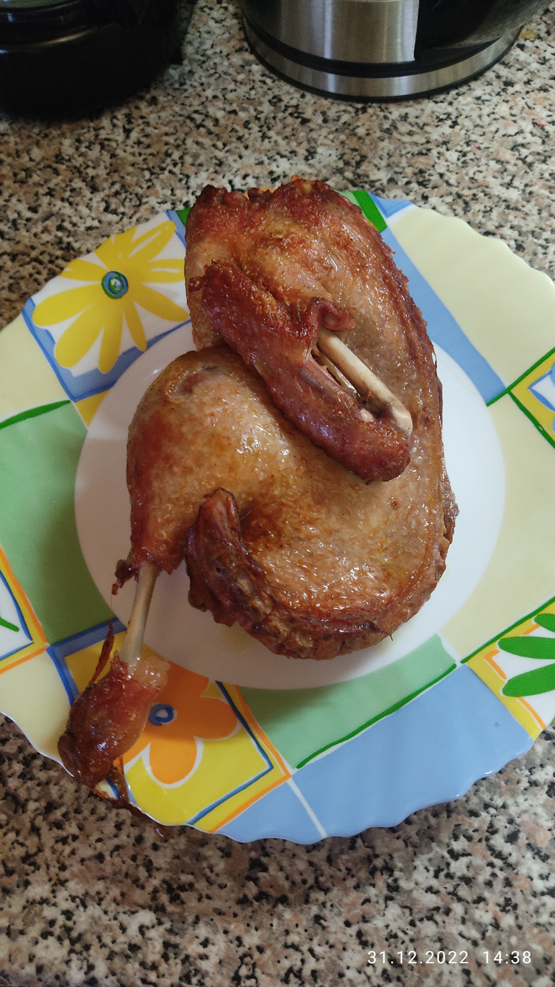 На горячее приготовили кроме стейков, утку в маринаде. Купил в упаковке для запекания в духовке. Удобно и вкусно!