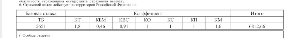Я для любой СК не выгодный клиент. С моим КБМ и КВС даже при максимальной базовой ставке, стоимость полиса будет 3577.
